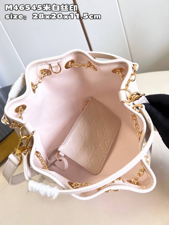 顶级原单 独家实拍 M46545米白丝印 本款 Summer Bundle 手袋出自 DéGradé 系列,崭新抽绳设计增添夏日氛围。Monogram Empreinte 压纹皮革包身呈现渐变色调,可点亮任意当季造型。双手柄与可拆卸斜挎肩带提供多种时尚背携方式,成就昼夜出行良伴。Size:28X20X11.5Cm 长度 X 高 X 宽