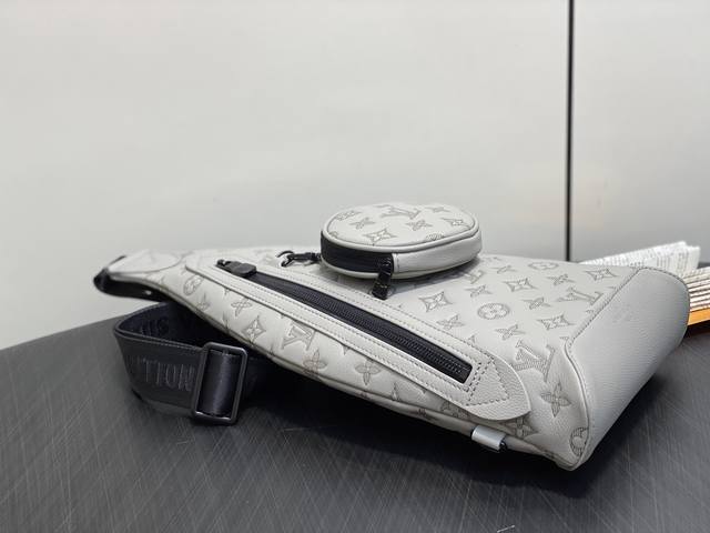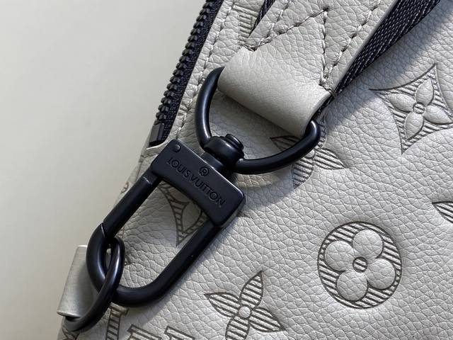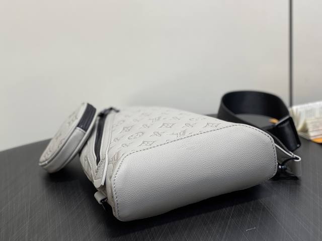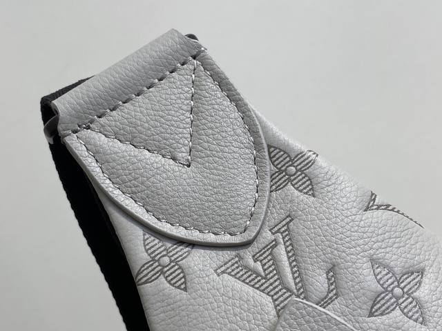 出厂价p 顶级原单 M14916灰色 全皮压花胸包 Duo 单肩包 本款 Duo 单肩包以柔软牛皮革塑造贴身构型 成就传统双肩包之外的实用之选 拉链侧袋可收纳智能手机 可拆卸收纳包方便取放物品 可调节提花织物肩带实现左右肩背 42 X 6 X 20厘米 高 X 宽 X 长度
