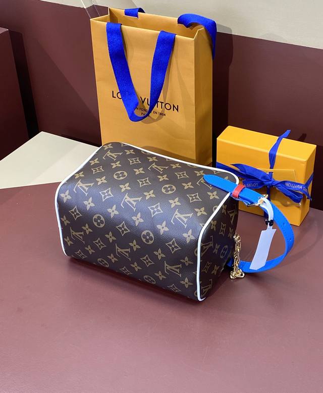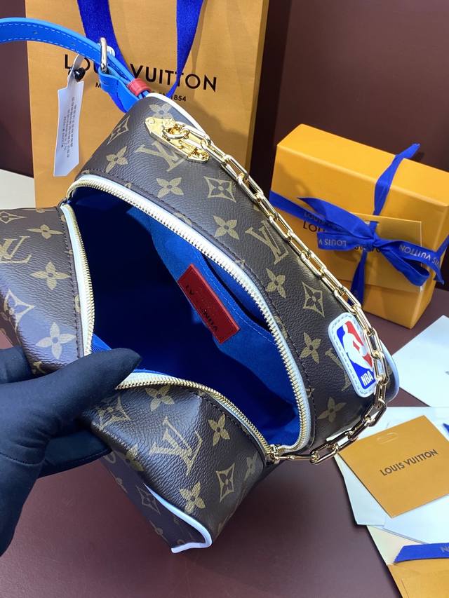 M45588!Lvxnba Cloakroom Dopp Kit 手袋取材经典 Monogram 涂层帆布,将 Nba 元素融入贴饰、内衬和可调节皮革手柄,搭配灵感源于联赛冠军奖杯的链条,诉说 Virgil Abloh 对 Nba 的无尽热爱。