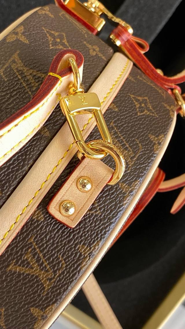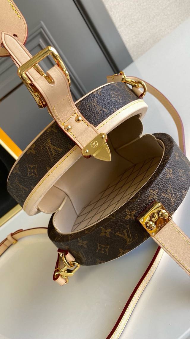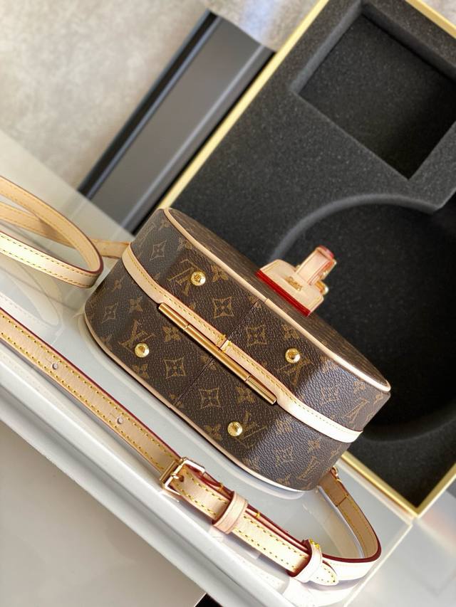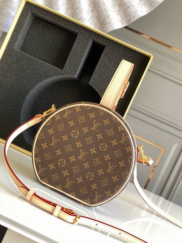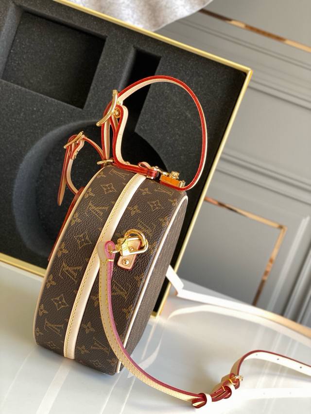 Petite Boite Chapeau 手袋经典的路易威登帽盒摇身变为此款风格可爱的随身小袋。小巧而实用 可放置一台iphone 7手机 ,双版本设计:经典monogram帆布搭配牛皮饰边;新潮的reverse Monogram帆布搭配黑色小牛皮饰边。