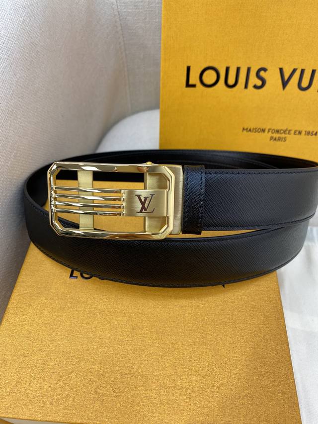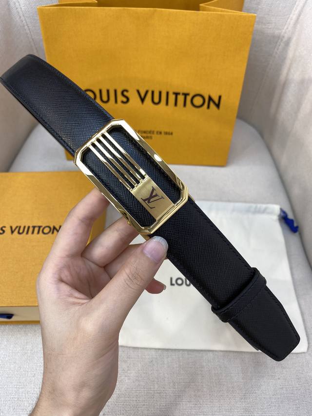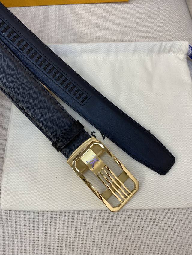 Lv -意大利进口头层十字纹牛皮配平纹底,搭配真空电镀纯钢自动扣,经典款式,专柜有售,市场顶级品质,支持验货 配送全套专柜包装,宽度 3.5Cm