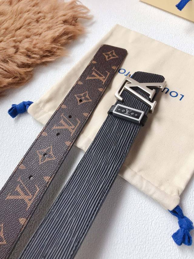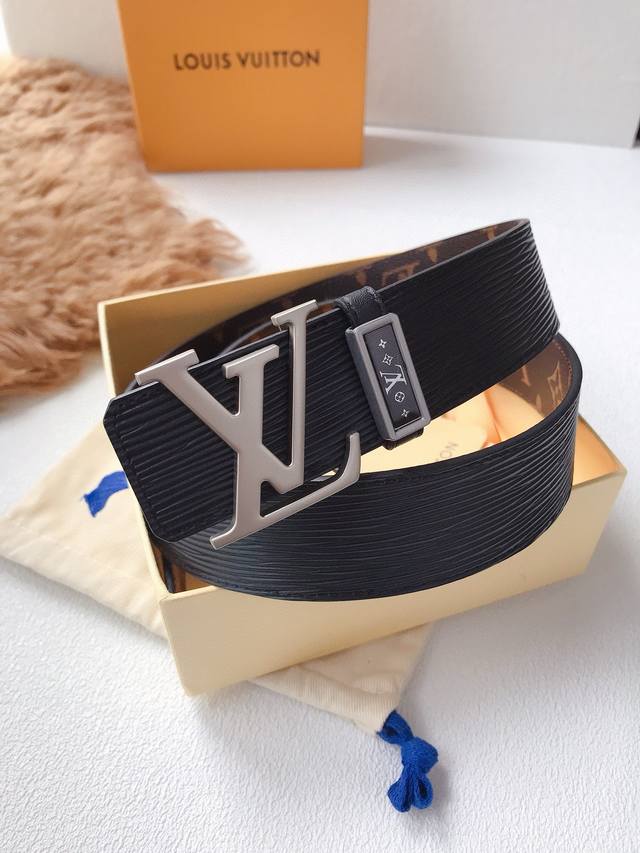 新款同步 Lv路易男士 原单宽度4.0 Cm 双面带身原单针纹皮棋盘格压花搭配,简单大方 精品五金 进口皮 佩戴效果非常不错...
