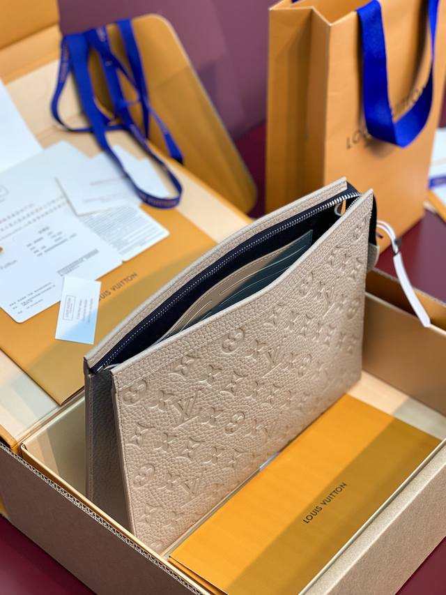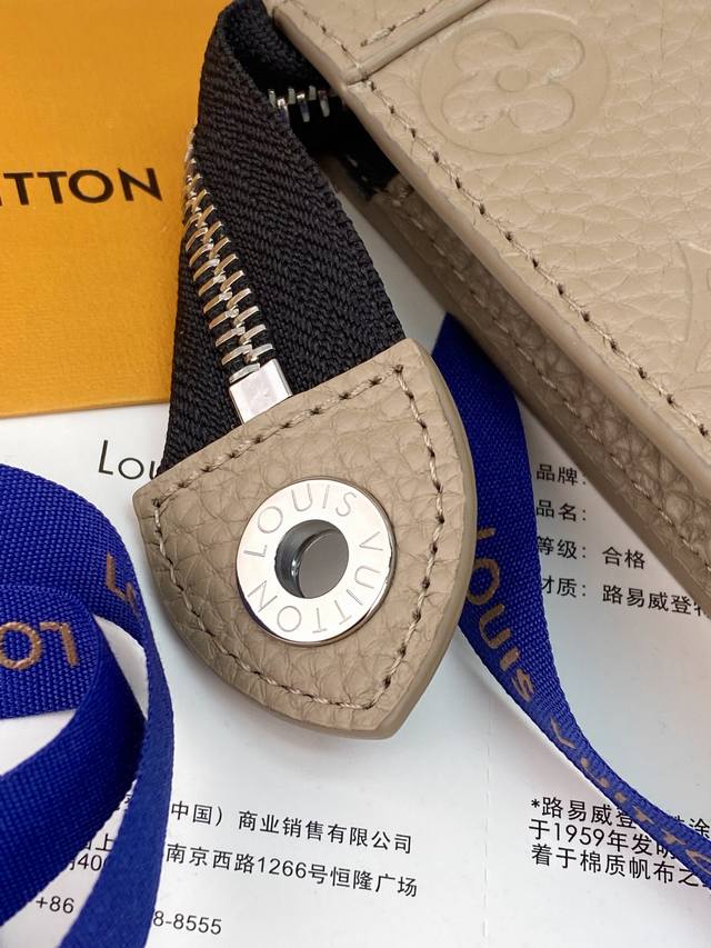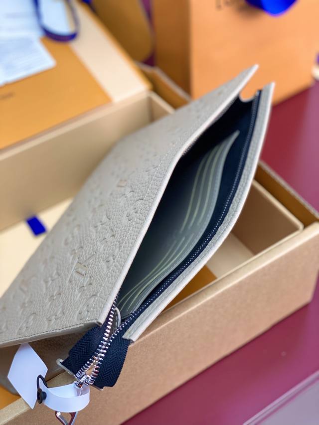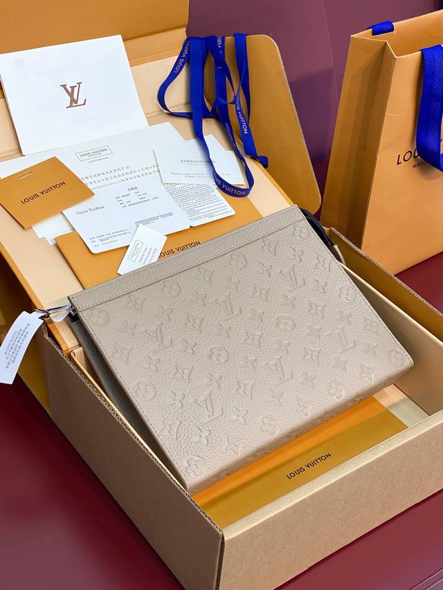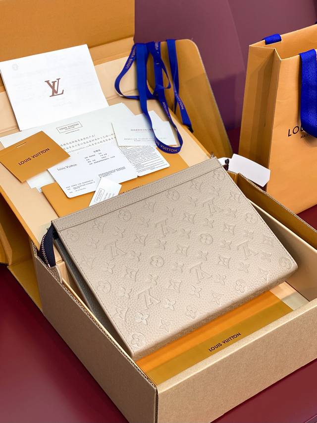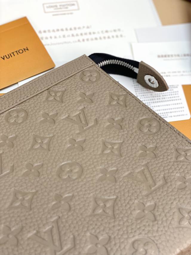 升级版本M13666 新灰!芯片版、 头层牛皮制作 Pochette Voyage 手拿包 本款 Pochette Voyage 手拿包取材 Taga 荔枝纹牛皮,以 Lv 字母标注一隅,搭配亮泽金属件。拉链开启卡位和主隔层,可容纳随行小物。