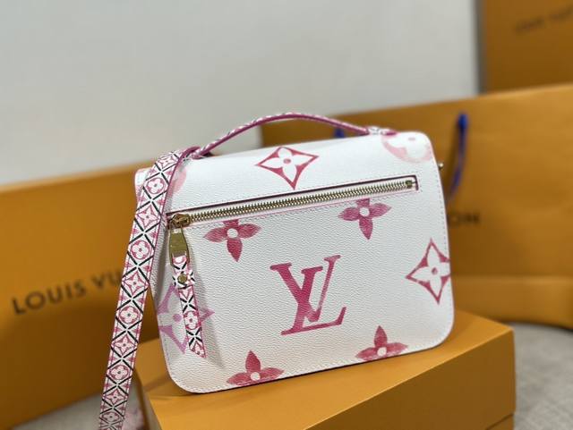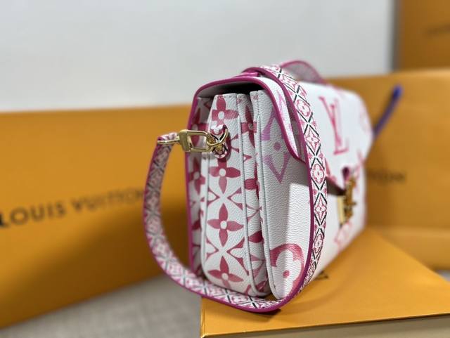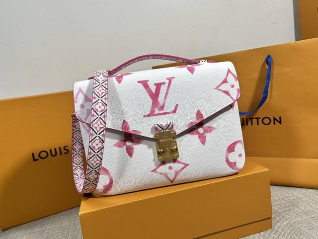 / 顶级原厂 复刻独家实拍M23055粉,本款 Pochette Metis 手袋以帆布烘托 Lv 字母和 Monogram 花卉的水彩效果,为顶部手柄和可拆卸肩带
