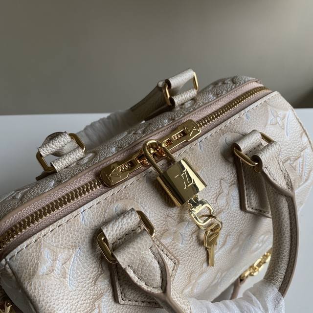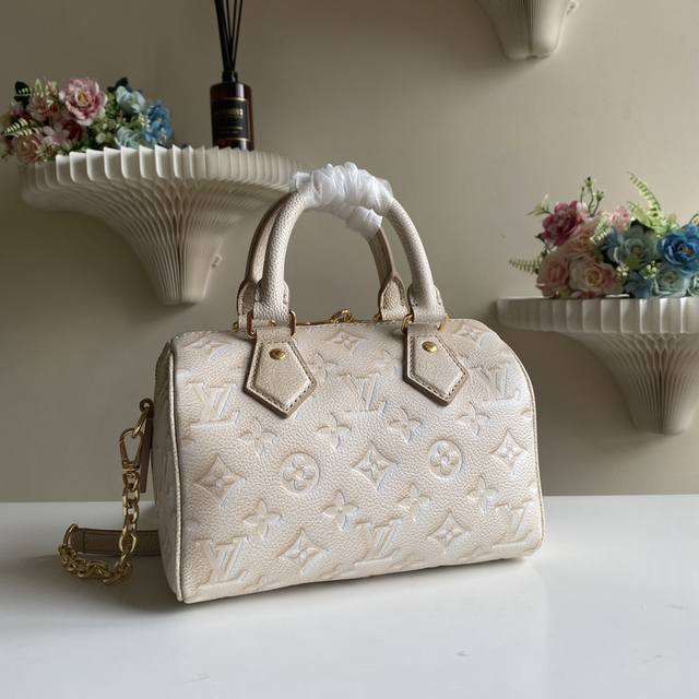 本款 Speedy BandoulièRe 20 手袋 M46092以新季色彩展露微妙莹泽 经典构型 轧制皮革手柄和钥匙包回溯 20 世纪路易行李箱的设计元素 可拆卸链条及皮革肩带实现肩背和斜挎选择。尺寸:20.5X13.5X12Cm