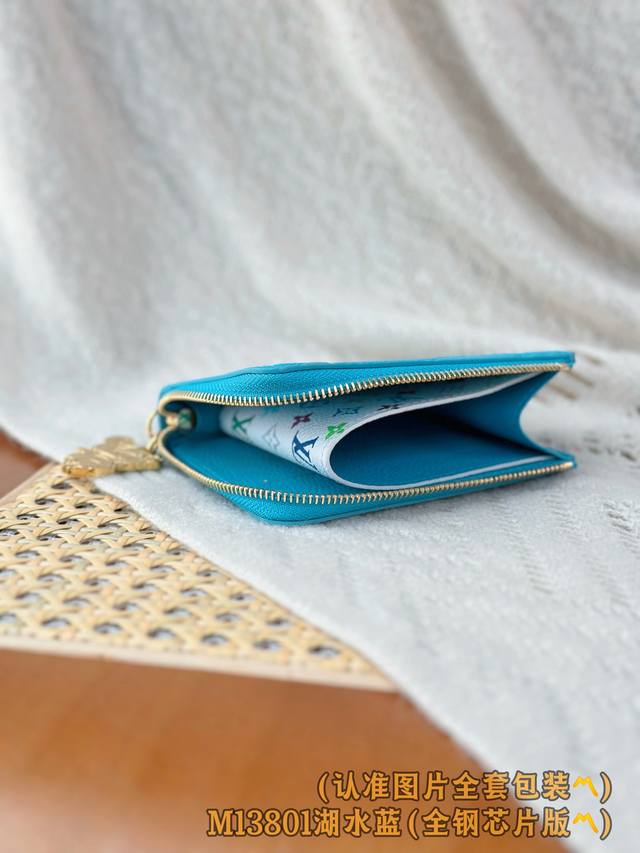 出厂价p M13801 湖水蓝 A级全钢版 个性化定制 变码芯片 Noa 小型錢包 這款Noa小型錢包以路易威登的經典Monogram牛皮制作 採用小巧的正方形設計 並設有別具特色的L型拉鏈為 而內層更設有彩色皮革襯裡 錢包設有六個名片夾層 以及寬敞的摺疊口袋