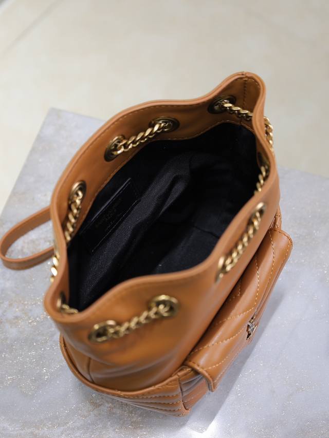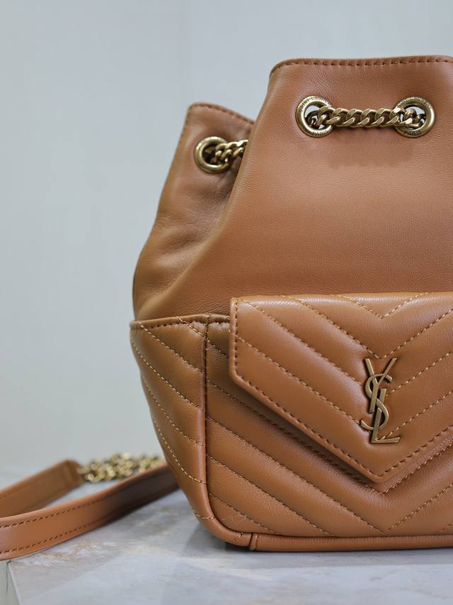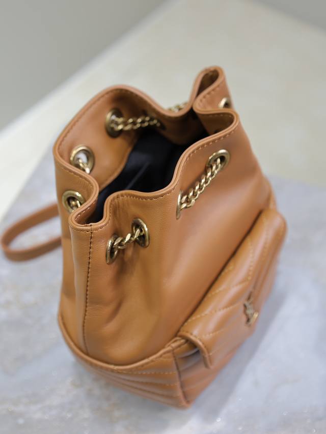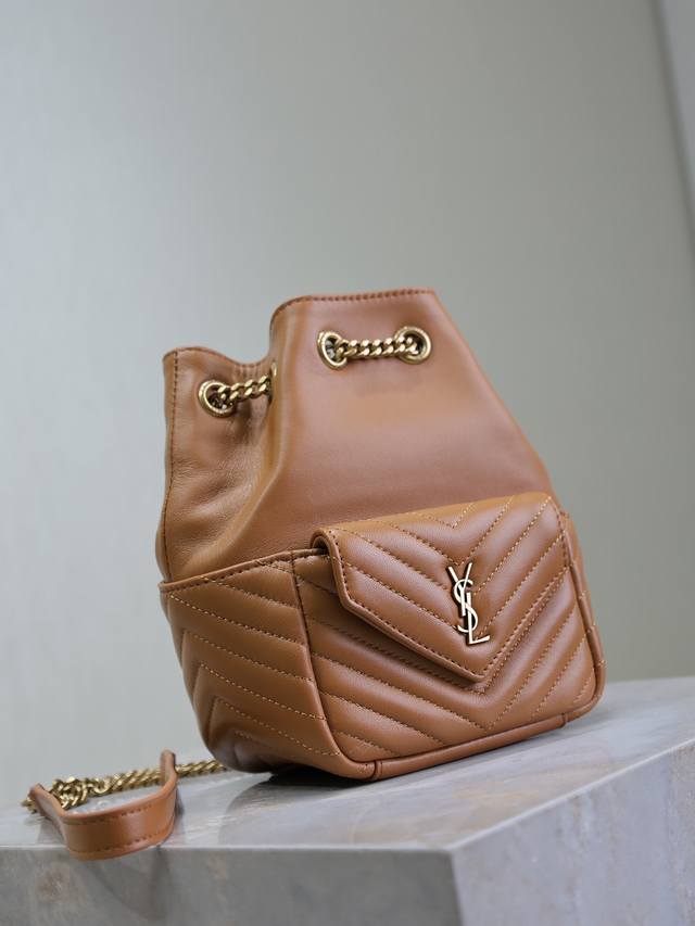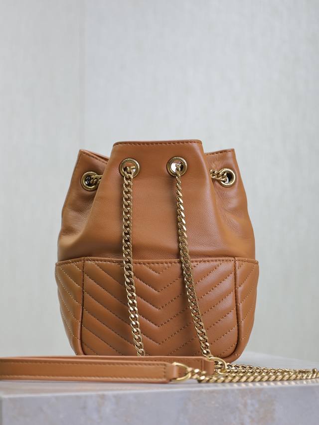 Joe_专柜最新V型绗缝迷你水桶包全新到货!它是可以捧在手心的小可爱!全包采用原厂小羊皮精心缝制,手感软糯又舒适!复古链条配上一点小皮肩带背起来超级舒服!前袋的V型绗缝工艺颇有辨识度,就是把大书包缩小了的迷你版本,真的是所有东西它只要变小了就显得特别可爱直击爱小包狂人的心里!空间容量不用担心绝对的够装,可松紧的包口更加好收纳,