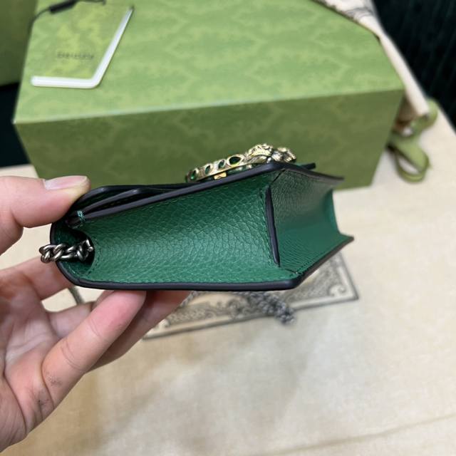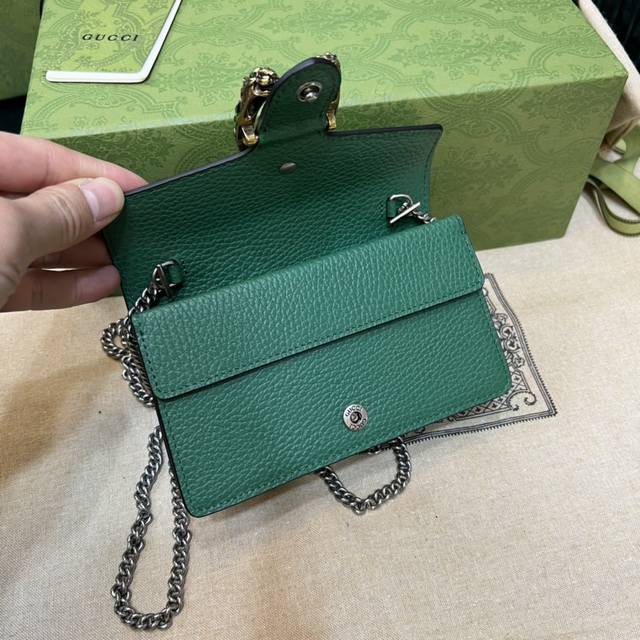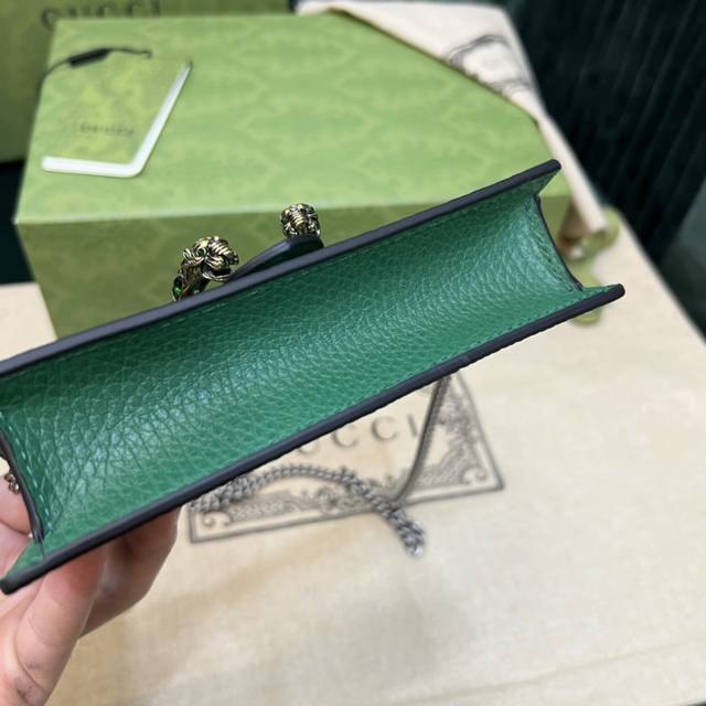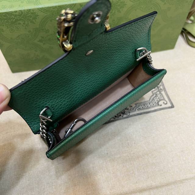 / 原厂皮 476432白皮dionysus颇具结构感的真皮链条超迷你斜挎包配有钥匙扣可以用于将此袋绑缚在另外更大的手袋封口配以织纹虎头马刺扣虎头扣装饰施华洛世奇尺