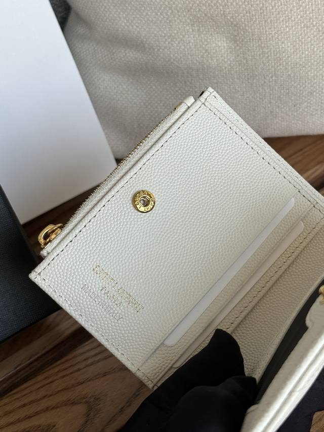 Ysl鱼子酱卡包现货来约,原版在香港3100入手, 超实用的一款,麻雀虽小,但特能装,百元大钞可以,零钱硬币也可以可放拉链袋内!最贴心之处是设有可露脸的证件卡槽,[奸笑]!总之就是人手必入超级实用 牛皮羊皮 全套专柜包装