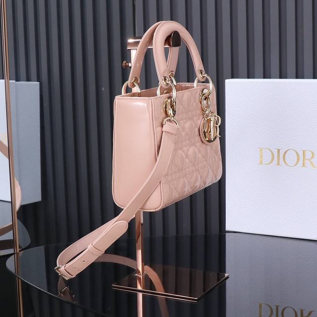 原厂皮 Lady Dior 四格粉色漆皮,经典款戴妃包手袋集中体现了 Dior 对典雅和美丽的深刻洞见。精心制作,以藤格纹缉面线打造醒目的绗缝细节,高雅经典的设计经久不衰。饰面金属“D.I.O.R.”吊饰,为精美的轮廓增添一分灵动。迷你款式,搭配可拆卸的链条肩带,可手提、肩背或斜挎,是晚装的理想良伴。可拆卸链条肩带,可随心搭配其他刺绣肩带,尺寸:20×17×8Cm