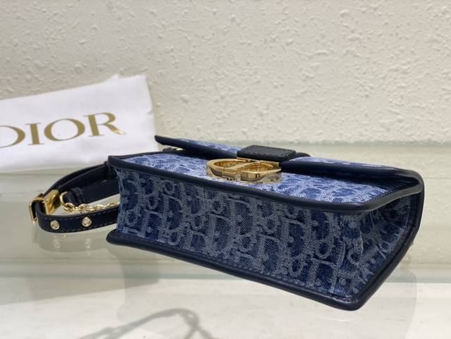 这款 30 Montaigne East-West 链条手袋采用典雅的设计,提升该系列的格调。采用蓝色 Denim Dior Oblique 提花面料精心制作,以不规则的石洗效果焕新演绎 Dior 的经典图案,彰显现代魅力。翻盖饰以复古金色饰面金属 Cd 扣环,灵感源自 Christian Dior 香水瓶的封口。背面 30 Montaigne 压花标志等其他细节突显利落的风格。搭配饰以皮革带的可拆卸链条肩带,可手提、肩背或斜挎。