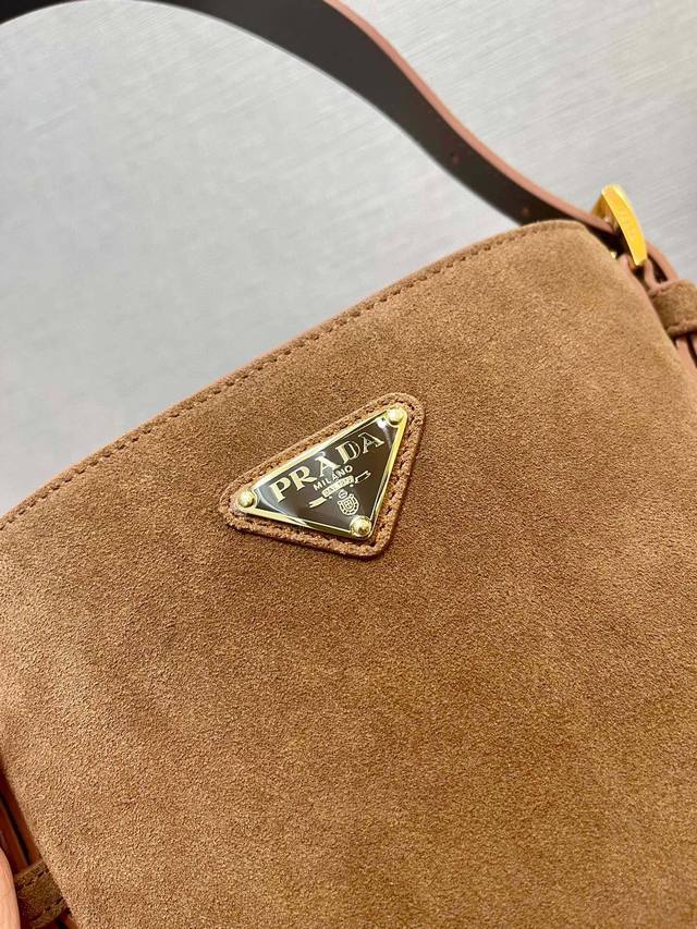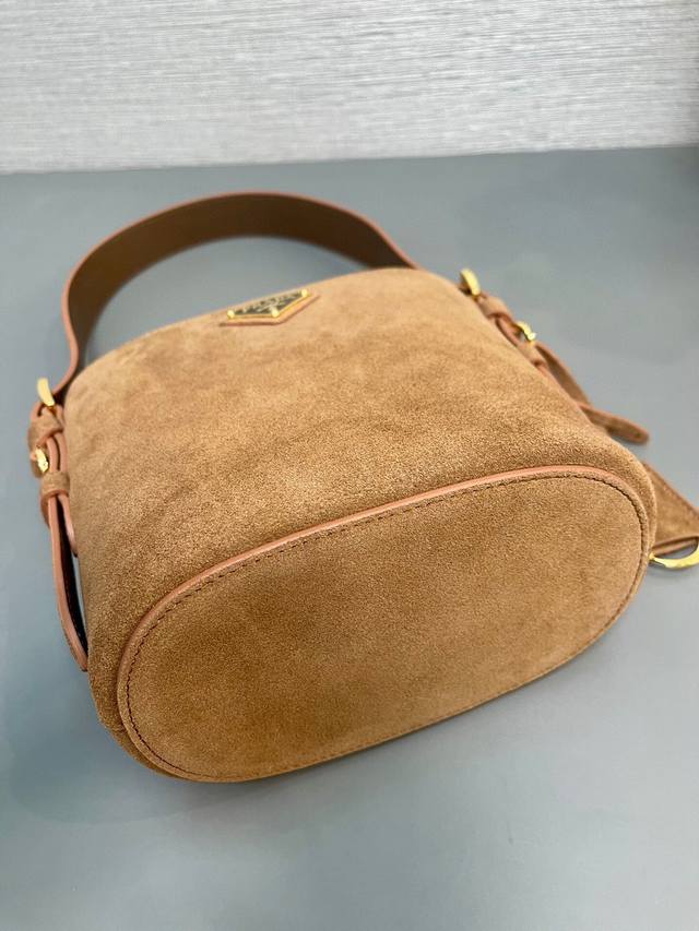 厂价 。 最高版本原厂皮顶级原单配专柜全套包装 顶级原单 新款水桶包1Be078鹿绒皮小号這款靈活易搭的水桶袋設計極簡,以柔軟的麂皮製作。肩带可调节,内配进口羊皮,答量空间大,上身效果又时尚潮流,冬天必备,值得拥有尺寸:长17高18.5底10.5Cm!