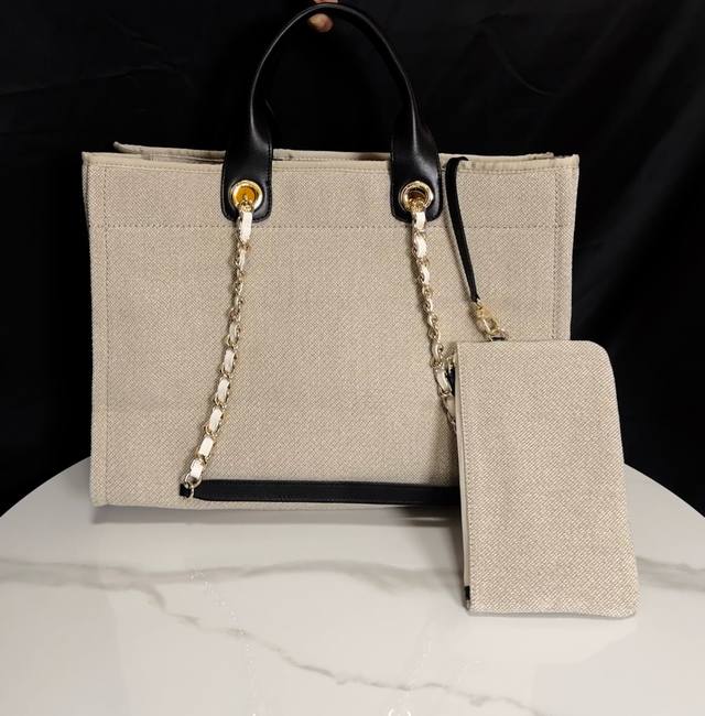66941新款 旅行的时候记得带上她!Chanel购物袋春夏新色来袭!沙滩包购物袋采用帆布材质製成,简约休闲的设计深受欢迎、而且容量够大又轻便时髦 适合日常使用 更适合出差旅行时轻轻休闲的搭配,实用性极高!尺寸:38Cm