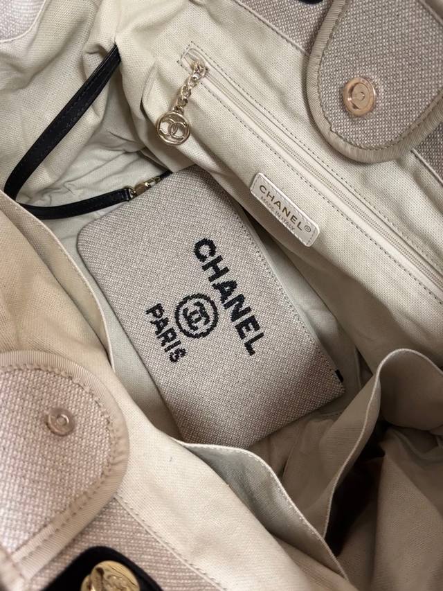 66941新款 旅行的时候记得带上她!Chanel购物袋春夏新色来袭!沙滩包购物袋采用帆布材质製成,简约休闲的设计深受欢迎、而且容量够大又轻便时髦 适合日常使用