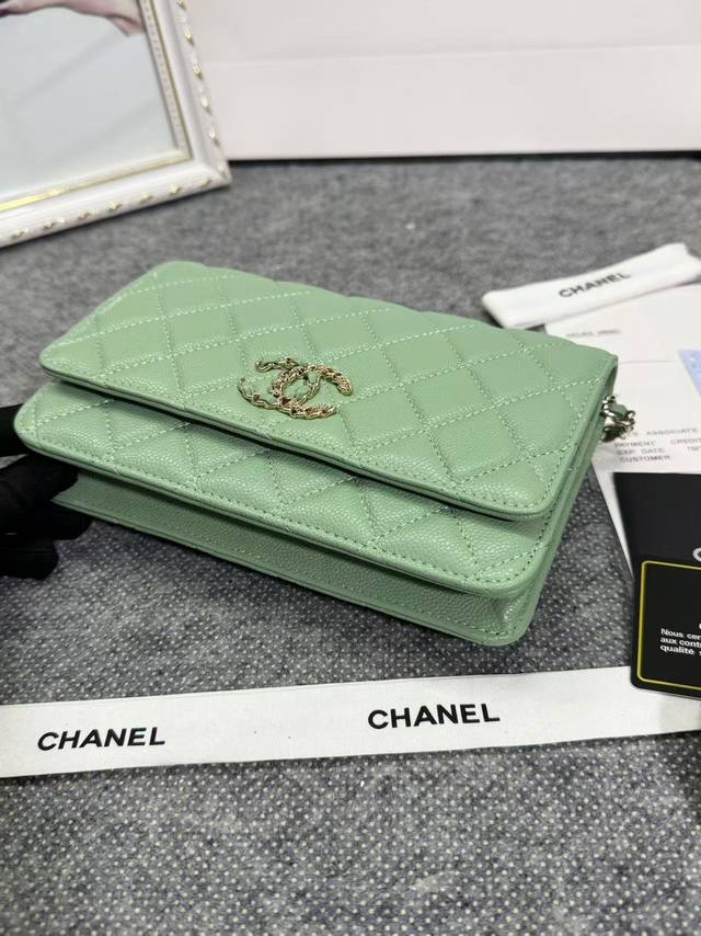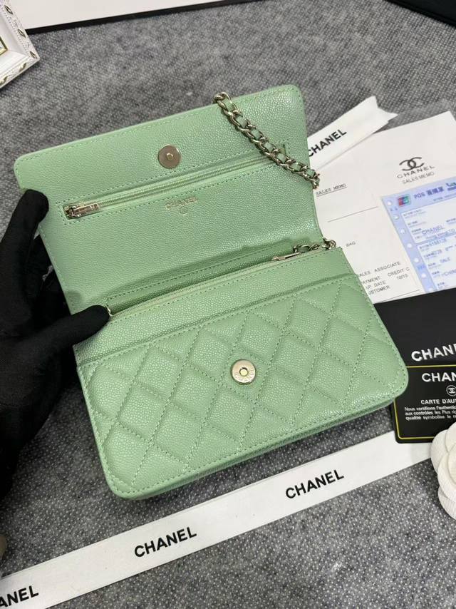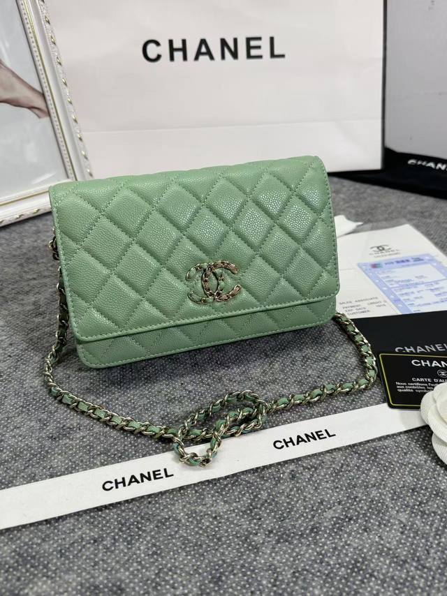 / Chane A P1794 新款进口牛皮细球纹woc太爱了!一眼就看上logo比经典款的大 一半穿皮 一半穿金链条 十分精致 :尺寸19Cm
