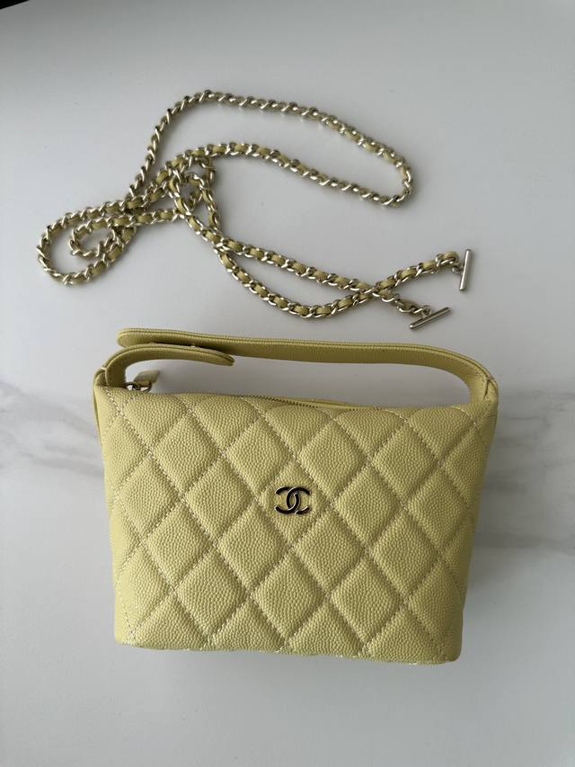 Chanel 23K黑银牛皮手柄风琴包 牛皮手柄黑银 这款跟Woc有点区别 包盖比Woc稍矮一点儿 侧面是风琴...
