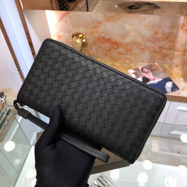 Bv葆蝶家钱包采用进口打蜡牛皮纯手工编织皮质越用越柔软光滑细腻 大号编制 ,颜色:黑色,规格:19 10 2Cm。