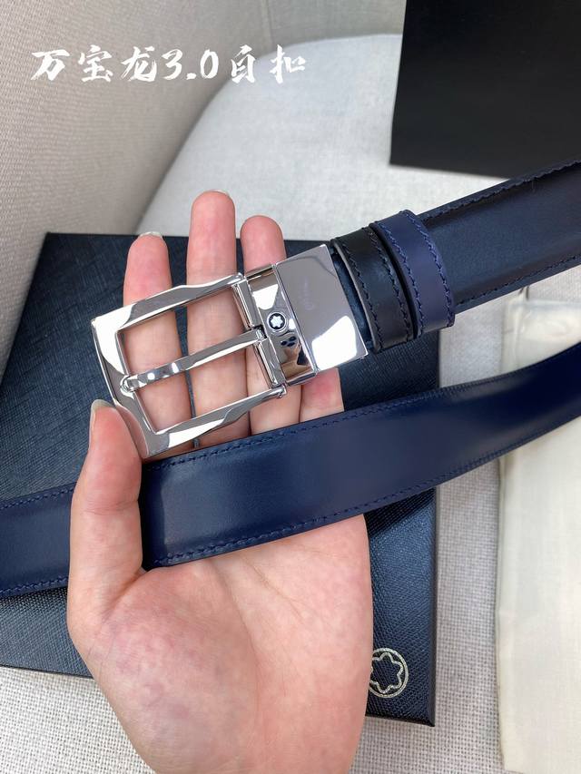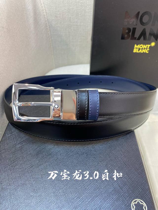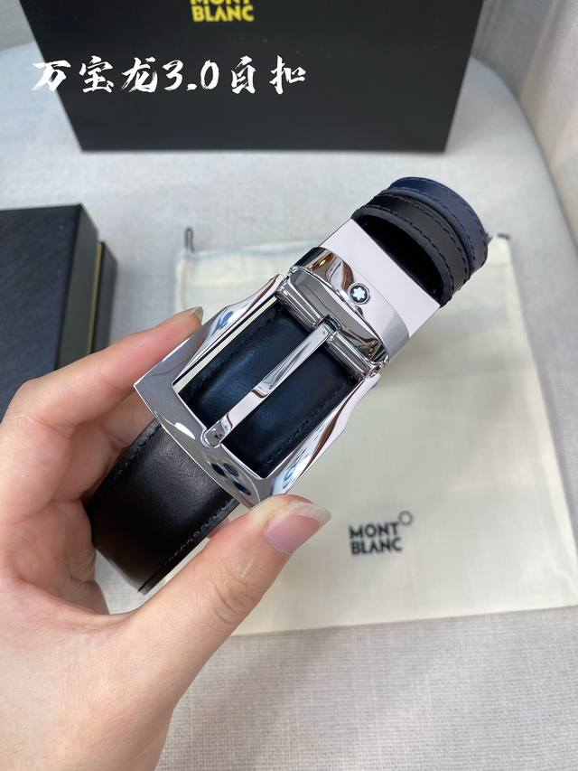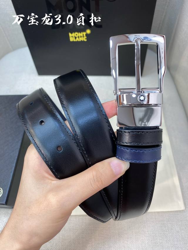 万宝龙 -双面意大利进口头层小牛皮,搭配真空电镀亮面纯铜针扣,官网新款,专柜有售,市场顶级品质,支持验货 配送全套专柜包装,宽度 3.0Cm