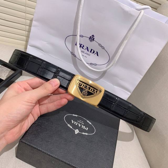 / 普拉达 Pr*Da 精品自动扣系列,版型外穿式,精钢打磨搭配原厂小牛皮带身,独特的设计结合了流行简约与优雅的气质,完美地衬托出prada优秀的产品。风格独树一帜