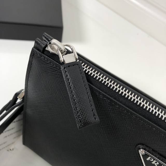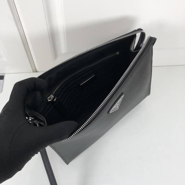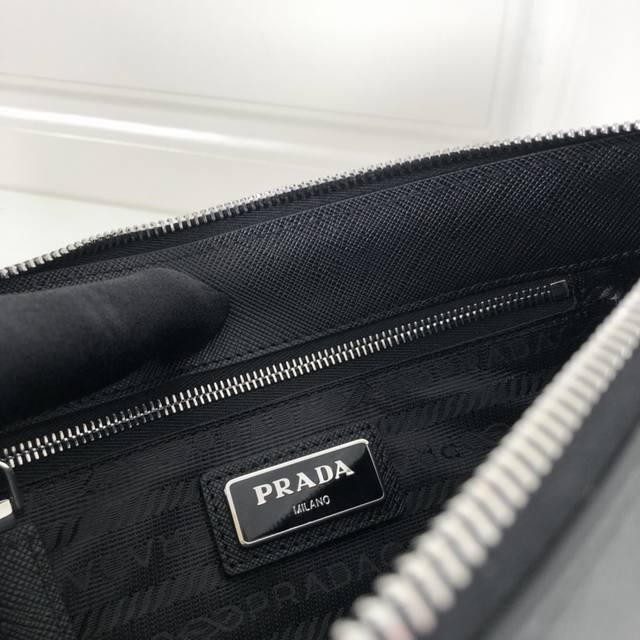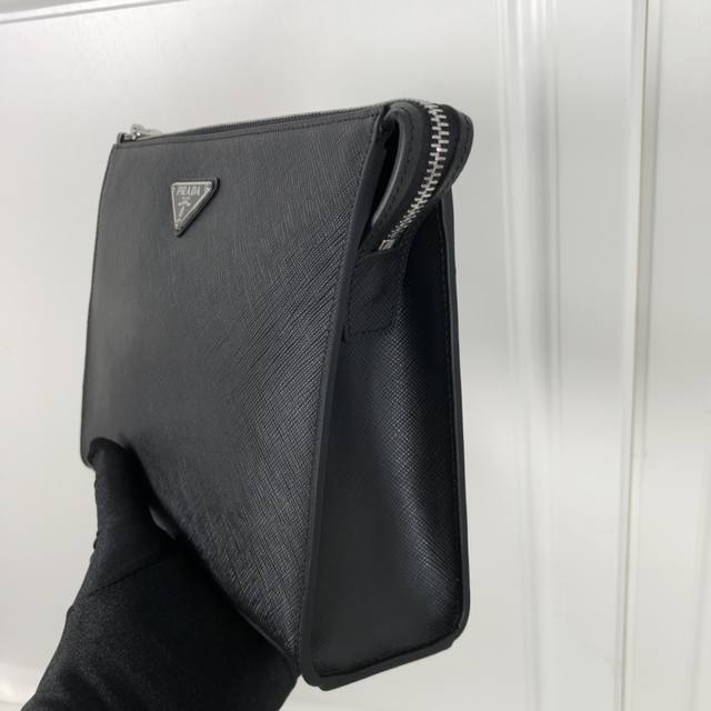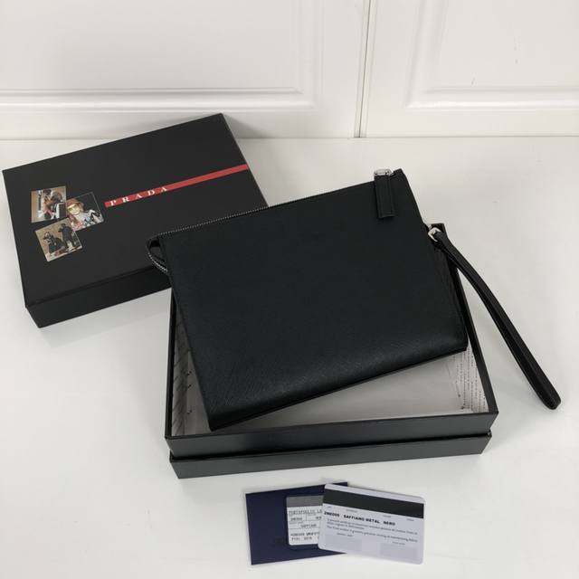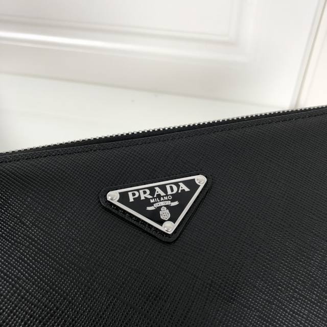 Prada 2Ne007男士手包 进口saffiano十字纹+配里布 经典倒三角标徽章 简洁大方 背面扁平手柄 配手腕带 随身携带方便...
