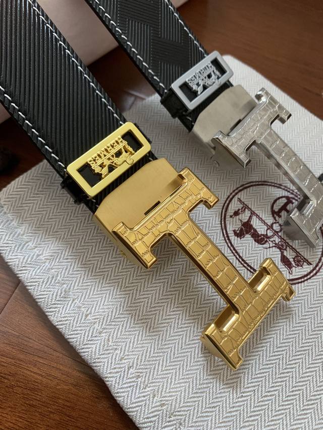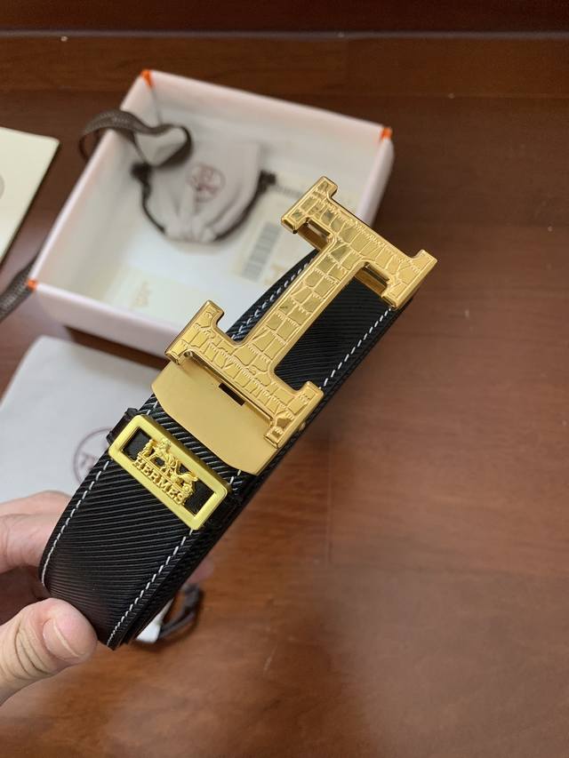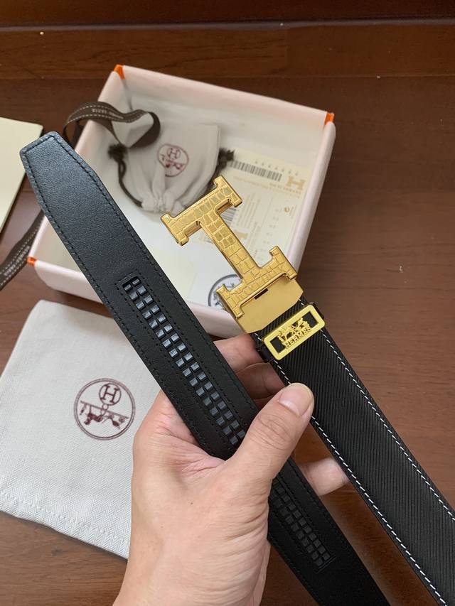 配图片正版包装,爱马仕自动扣系列! 高端精工细作,纯钢材质,新款皮纹意大利进口皮料精选。真空电镀五金扣件,无瑕疵打磨,厚实皮料质感超赞,手感柔软绝非普通牛皮可比,宽度3.5Cm