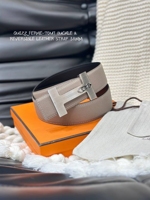 爱马仕 意大利进口头层手掌纹牛皮配平纹底,搭配真空电镀拉链图案纯钢扣,官网新款,专柜有售,市场顶级品质,支持验货 配送全套专柜包装,宽度 3.8Cm