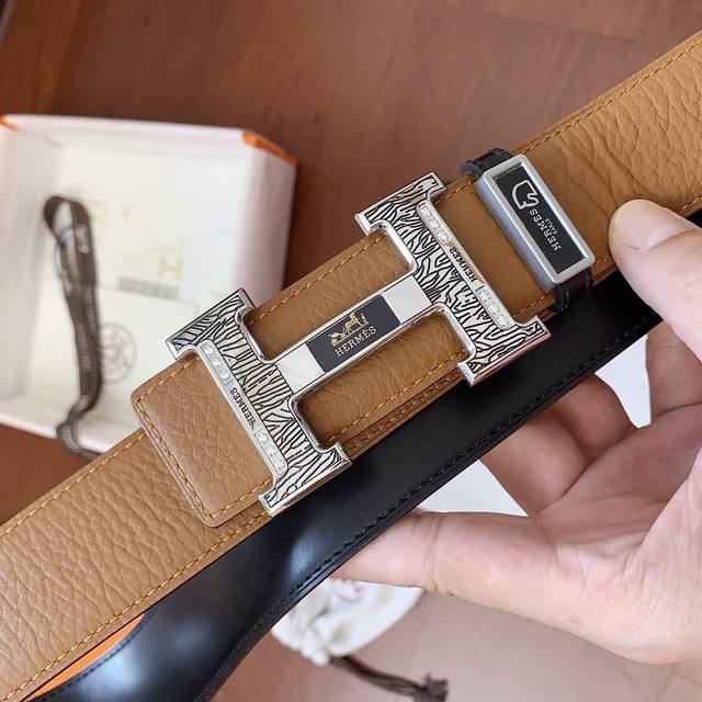 爱马仕 -意大利进口头层手掌纹牛皮配格子纹底,搭配真空电镀纯铜自动扣,经典款式,专柜有售,市场顶级品质,支持验货...