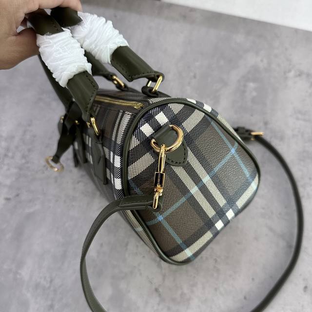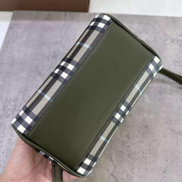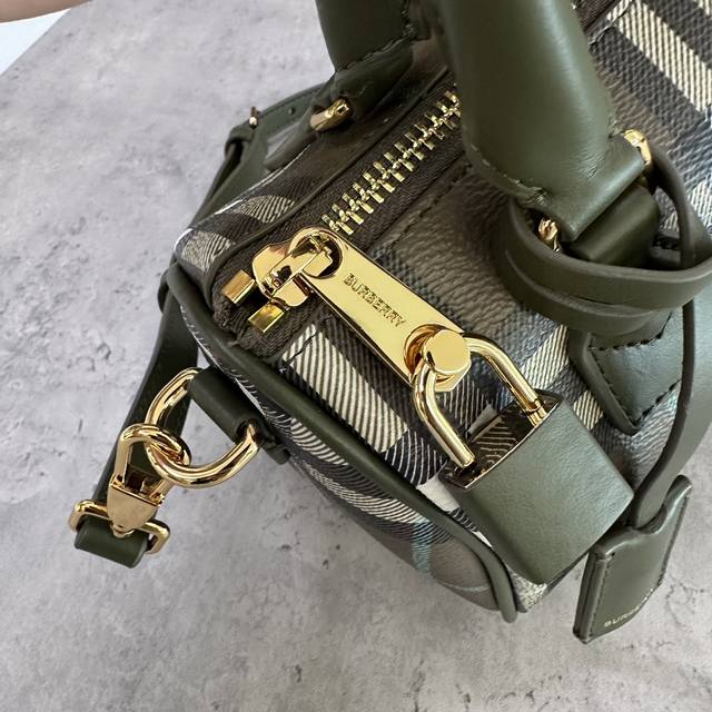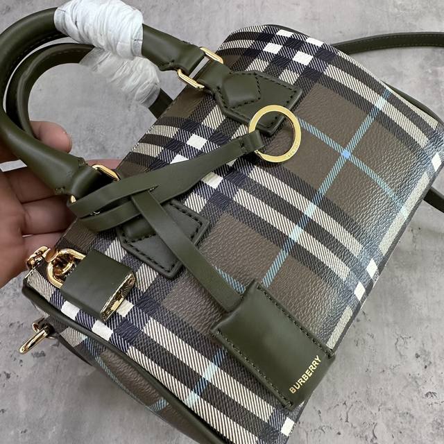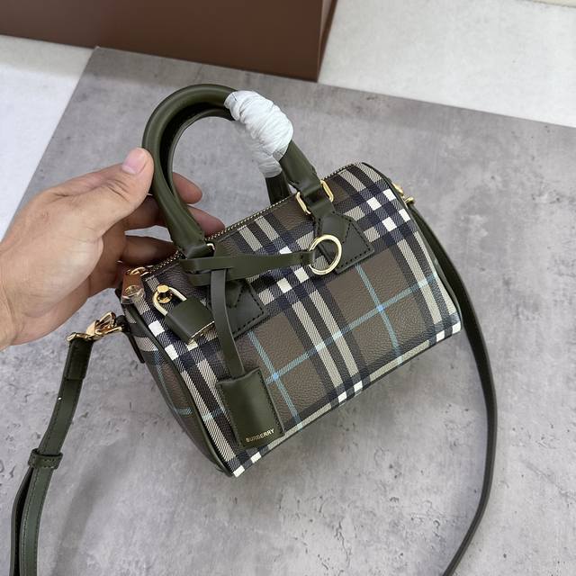 / 特惠 B家迷你枕头包,立挺设计,装饰 Burberry 格纹,搭配皮革裹覆挂锁和行李吊牌。18.5 X 11 X 12Cm.顶部皮革提柄.可拆可调式肩背带.拉链