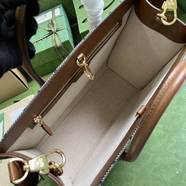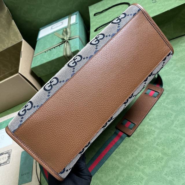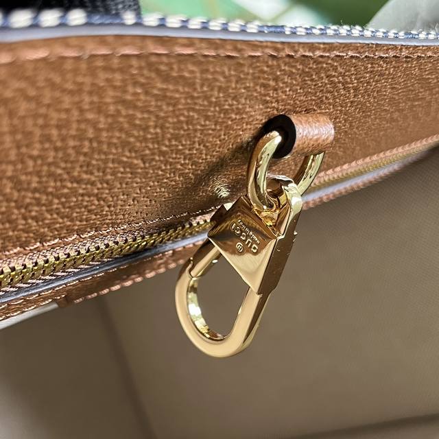 配全套原厂绿色礼品袋 超级双g托特包。在春夏系列中,超级双g以棕色蓝色g帆布设计焕新演绎标志性旅行箱包。作为对guccio Gucci先生姓名首字母的焕新演绎,Gg以超大尺寸亮眼呈现于这款托特包 另配有肩带 之上,营造出独特的品牌标识魅力。蓝色超级双g帆布,棕色皮革滚边,棉麻衬里,内部:1个拉链口袋,提手 9.5厘米高 织带肩带 60厘米高 钩扣。重量:约1.3千克。