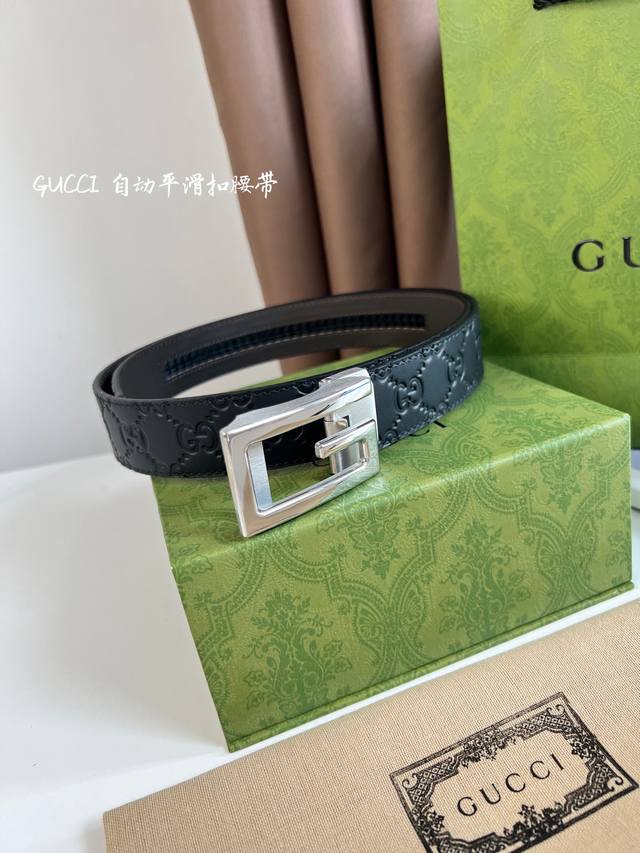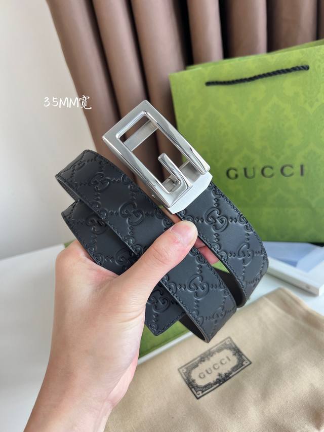/ Gucci -意大利进口头层压花小牛皮配平纹底,搭配真空电镀亮面纯钢自动扣,经典款式,专柜有售,市场顶级品质,支持验货 配送全套专柜包装,宽度 3.5Cm