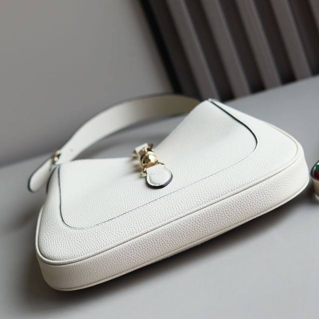 顶级原单 秋冬系列焕新演绎Gucci Jackie 1961系列肩背包,采用精细古驰安可拉红 Rosso Ancora 皮革制作,搭配全新浅金色调推入式锁扣开合,彰显品牌经典手袋的精湛工艺、新月造型和流畅廓形。这款小号肩背包搭配皮革肩带,另附红绿织带肩带,成就多样穿搭选择。