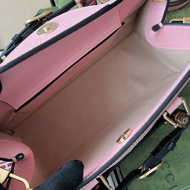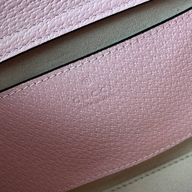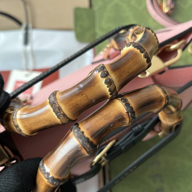 原厂皮配 Cdfmall三亚免税店手提袋 Gucci Diana竹节小号肩背包。作为古驰创星说 Gucci Cosmogonie 系列最新款型,Gucci Diana系列继续融合标志性品牌元素与竹节提手和双G造型配件。粉色皮革材质与两根皮革装饰带相映成趣,突显灵动优雅的气质。粉色皮革,金色调配件,如图所示,这款单品附带2条装饰用皮革手柄扣带,双G竹节提手,可拆卸可调节皮革肩带,可拆卸金属链肩带。