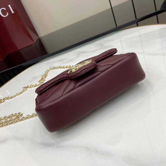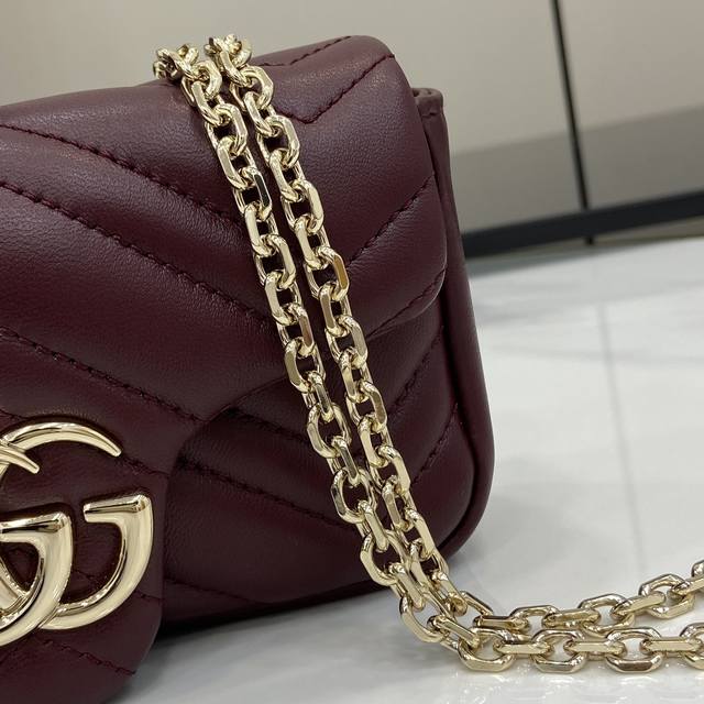 配全套原厂专柜包装 新品 品牌标志性Gg Marmont系列匠心融蕴双G造型配件和切面链式包带 甄选柔软皮革缔就线条柔和的包型 这款迷你包袋缀饰20世纪70年代初次亮相的品牌典藏标识