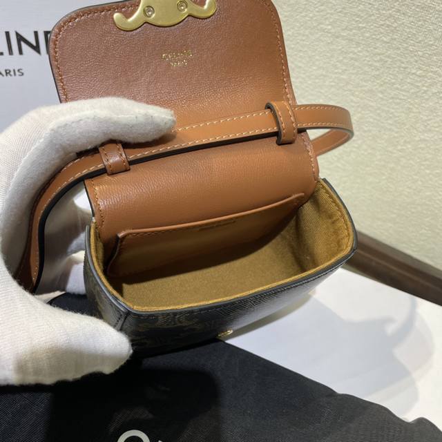 全钢五金 Celine 新品Mini 耳机包 C家这一年陆续出的小包但这一季Cline Mini可可爱爱必收、虽然小包容量不是特别大、但是颜值暴击,可爱暴击又不是大方、肩带可以调节、通勤出街绝对回头率百分百,主要是高个子小个子都容量可以装口红,粉饼,钥匙款号:101512 料棕尺寸:11×4×8