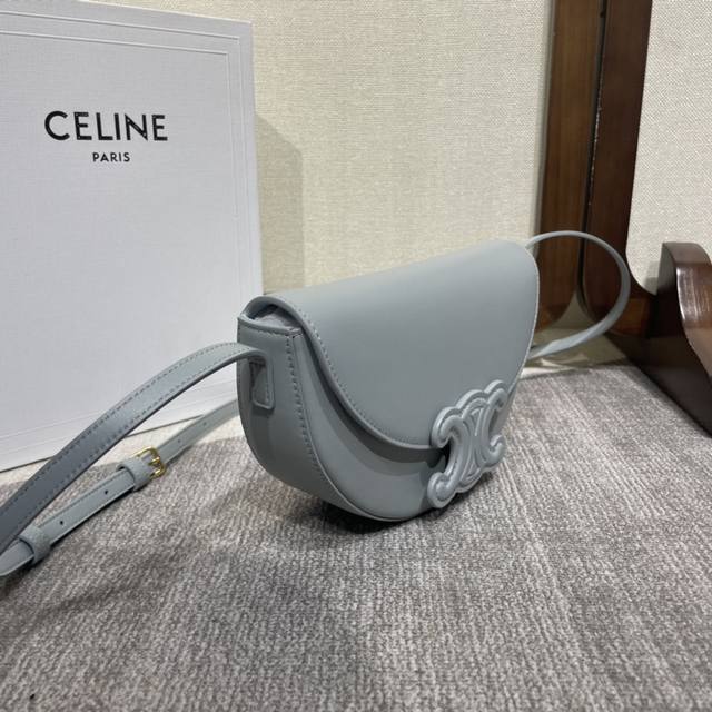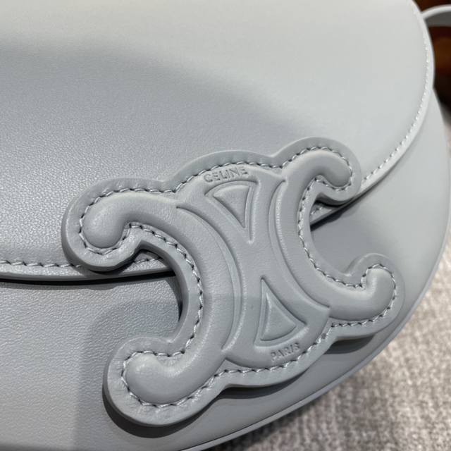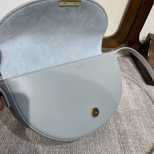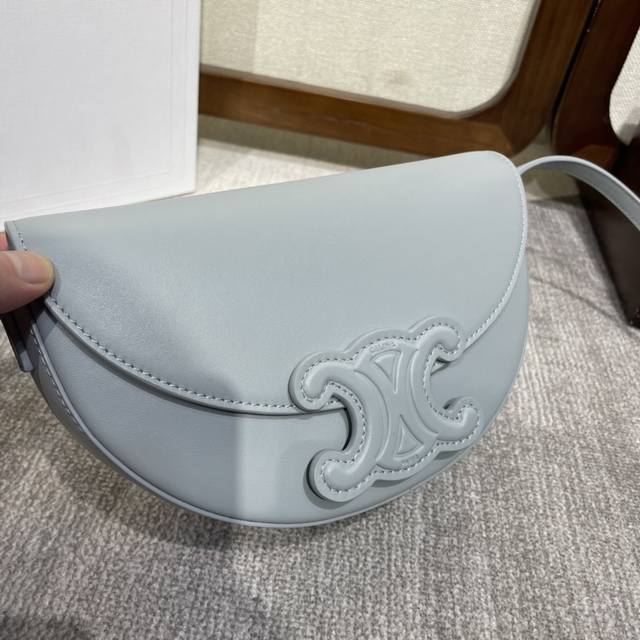 Ce22冬季秀款|月亮包Celine Basace凯旋门 纯皮质 没有金属呈于表面的装点 反而将一切回归质朴按扣开合 原厂皮搭配纯钢金 极致的细节 包型很有设计感 斜挎舒适 洋气百搭~很适合秋冬搭配同色系大衣或者廓型毛衣 超级百搭 还可以把肩带多打一个孔秒变腋下包,一包双用 超高性价比 新一季上新的冰蓝色系也加入其中 超级治愈~ 型号: 111233.尺寸: 23×13.5×6Cm