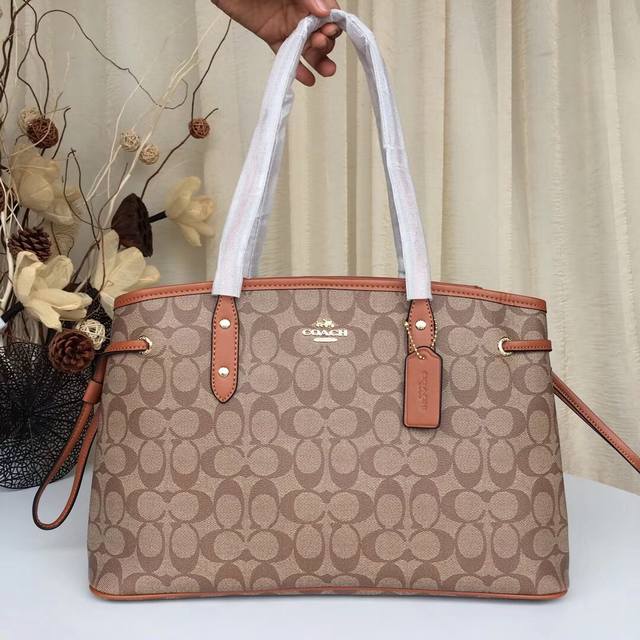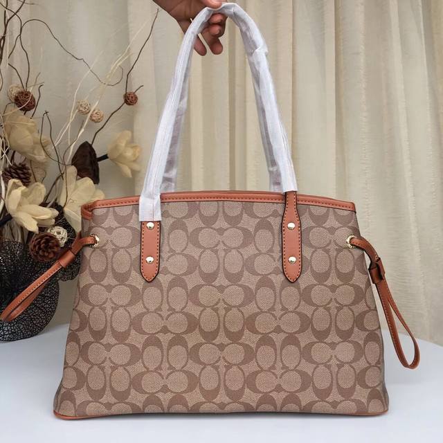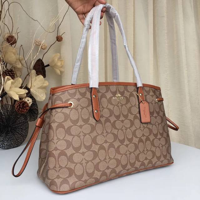 Coach F57842 Pvc材质款抽绳款戴妃包 搭扣封口 内里有一个拉链封口隔层 容量很大 经典款式 全新的做法! 手提 单肩背都可以哦!! 百搭款!尺寸: 36*24*16