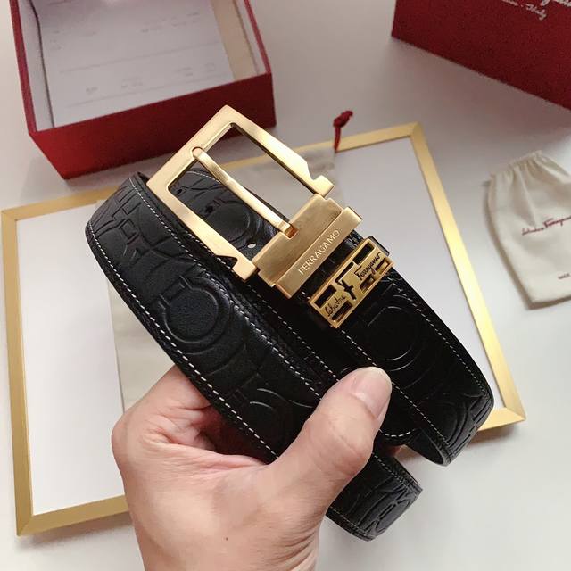 配正版包装,菲拉格慕原版针扣精品新款logo打磨制作,看图看细节,非常厚实饱满,正版同步, 皮纹清晰质感舒适 版型时尚高档 宽度3.4 Cm 高清实拍大图 ,保质保量