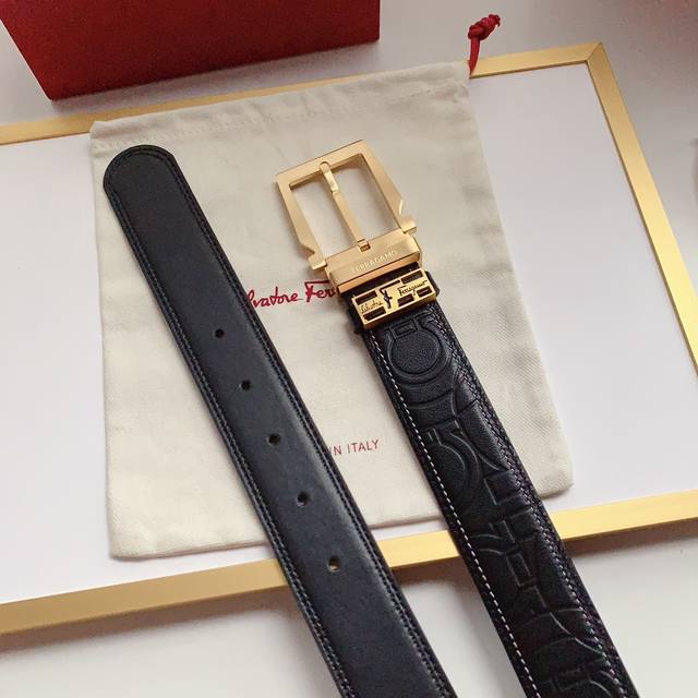 菲拉格慕 -双面意大利进口头层压花小牛皮,搭配真空电镀亮面纯铜扣,经典款式,专柜有售,市场顶级品质,支持验货...