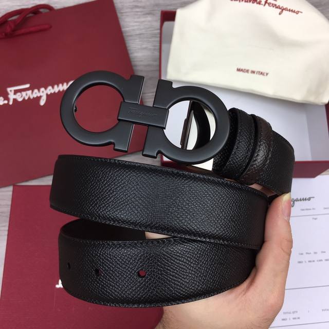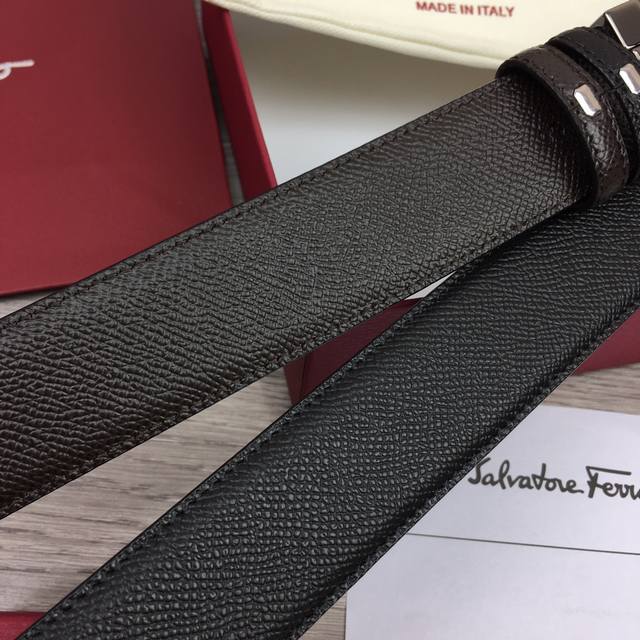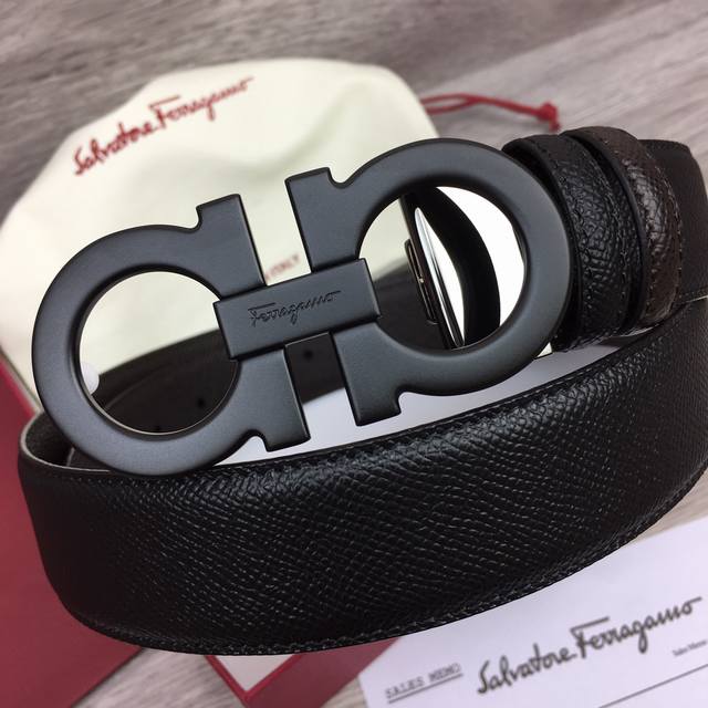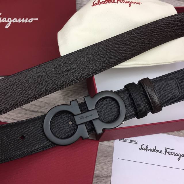 菲拉格慕 -双面意大利进口头层手掌纹牛皮,搭配真空电镀喷砂纯铜扣,经典款式,专柜有售,市场顶级品质,支持验货 配送全套专柜包装,宽度 3.5Cm