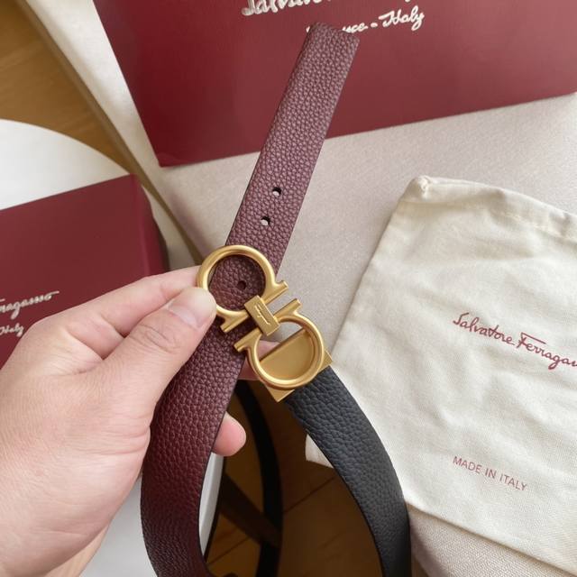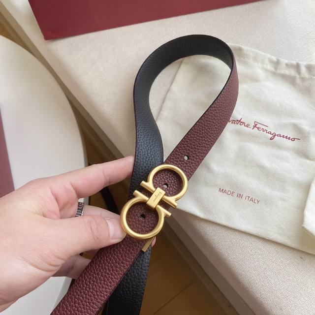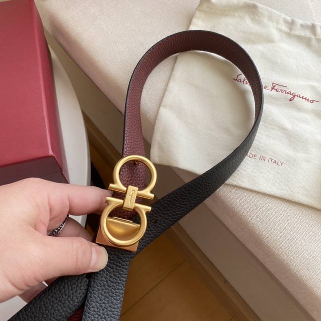 菲拉格慕 双面意大利进口头层荔枝纹牛皮,搭配真空电镀亮面纯铜扣,经典款式,专柜有售,市场顶级品质,支持验货...
