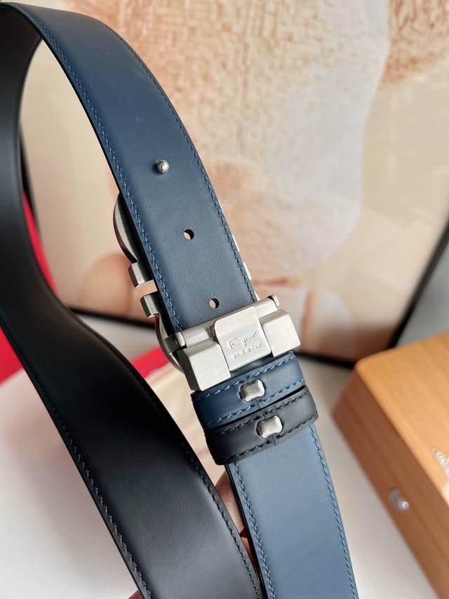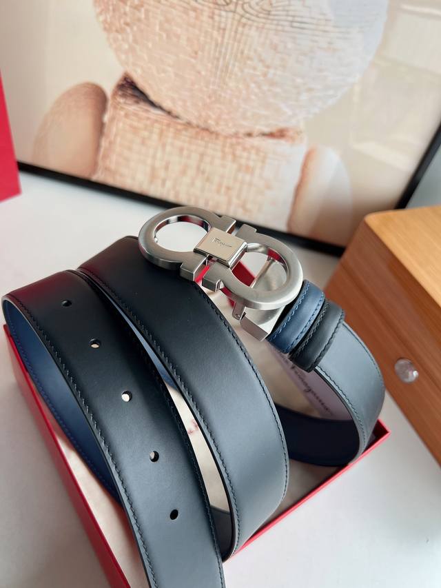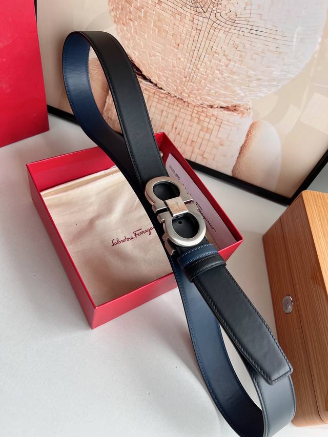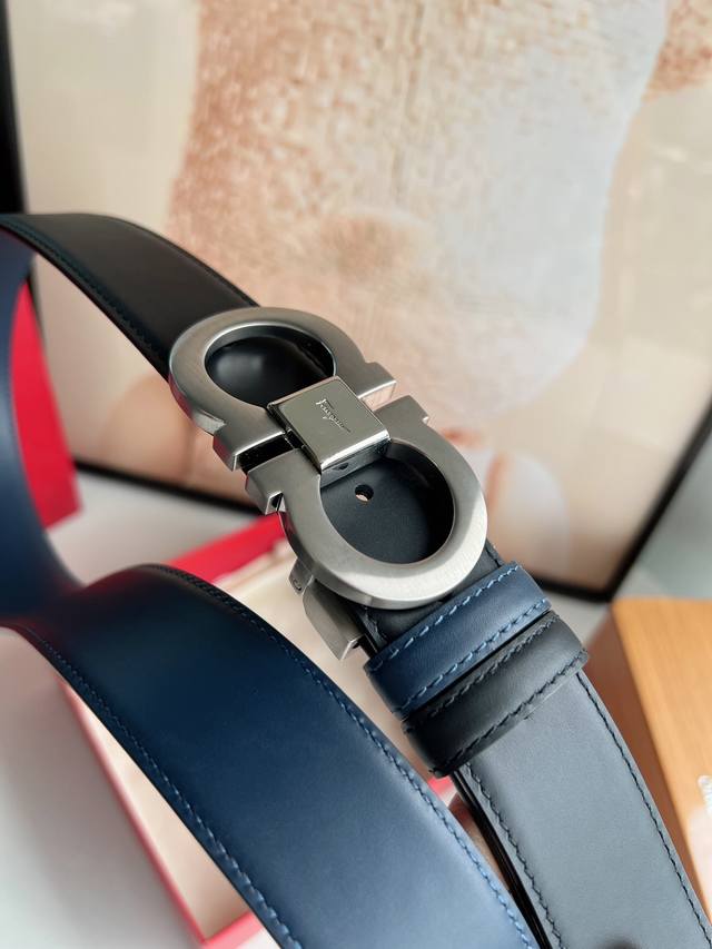 配正版包装菲拉格慕官网同步新款,原单镀钯精品扣,定制牛皮,双面带身皮纹质感柔软,请看图片认细节,品质保真,宽度3.4Cm...