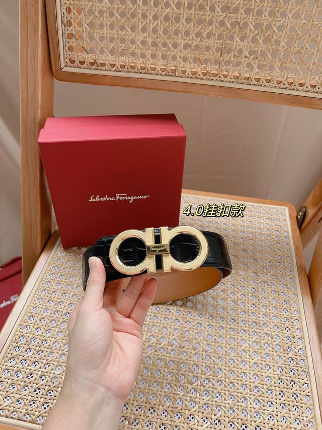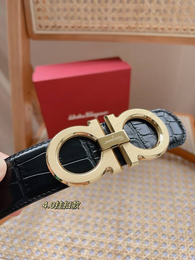 / 菲拉格慕 -意大利进口头层鳄鱼纹牛皮配平纹底,搭配真空电镀拉丝纯铜扣,经典款式,专柜有售,市场顶级品质,支持验货 配送全套专柜包装,宽度 3.8Cm