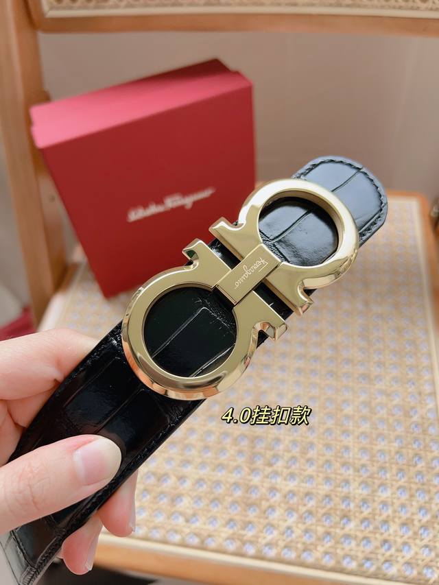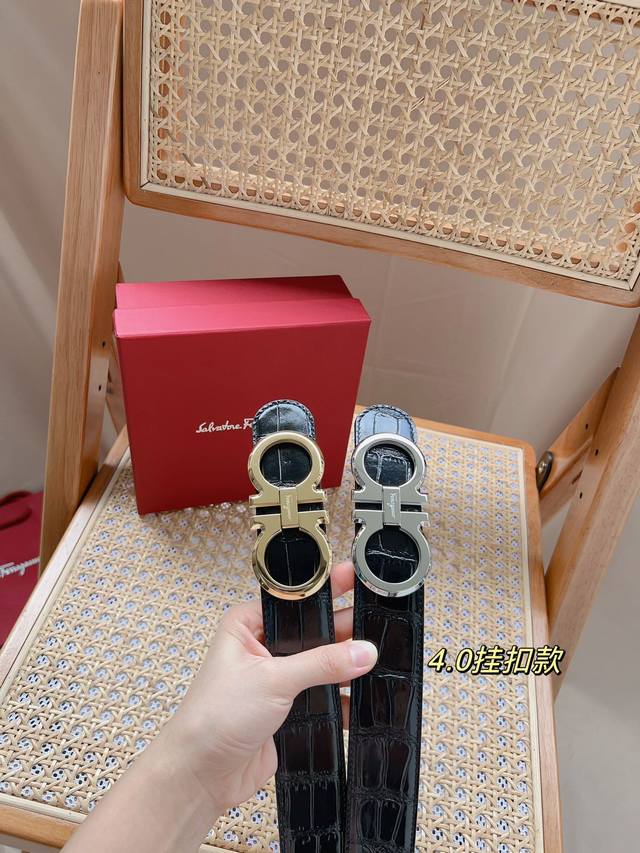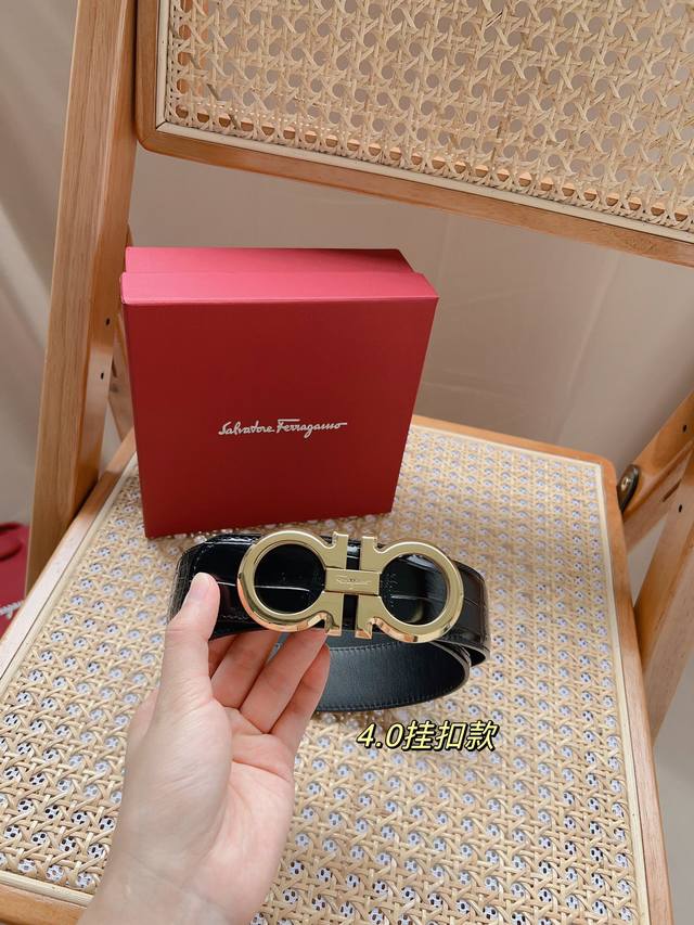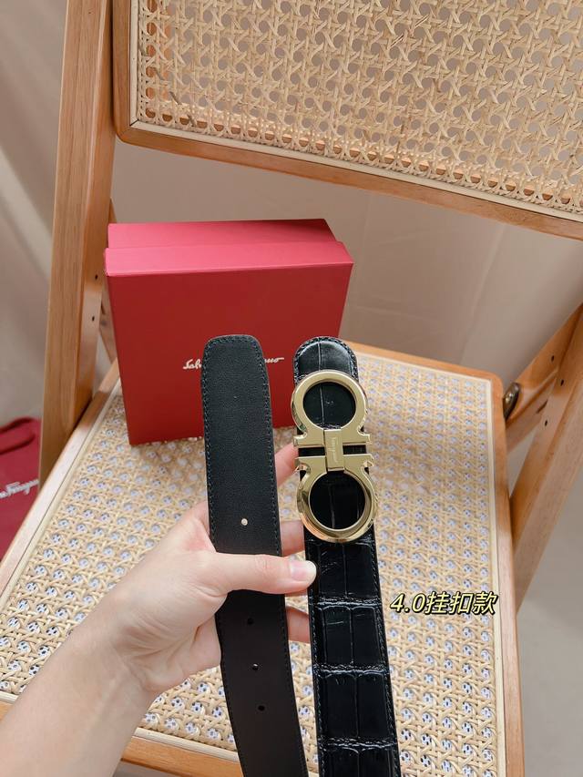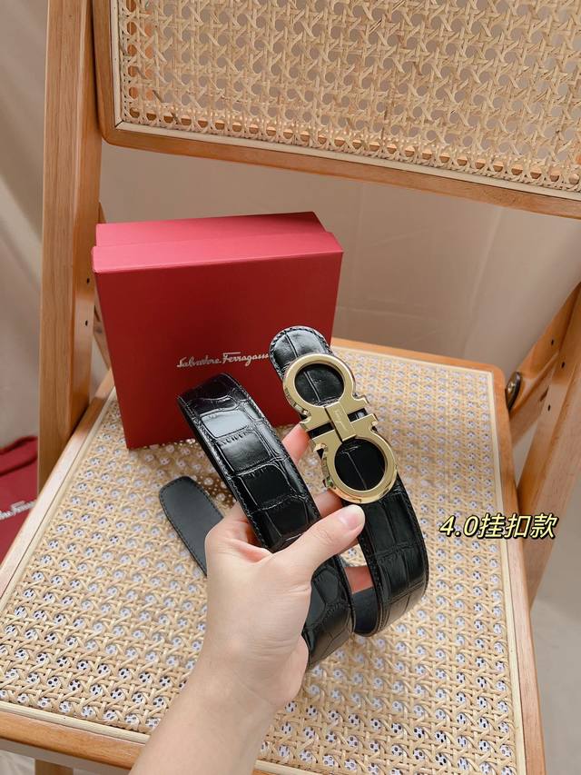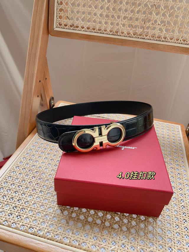 / 菲拉格慕 -意大利进口头层鳄鱼纹牛皮配平纹底,搭配真空电镀亮面纯铜扣,经典款式,专柜有售,市场顶级品质,支持验货 配送全套专柜包装,宽度 3.8Cm