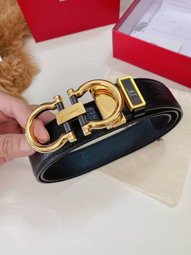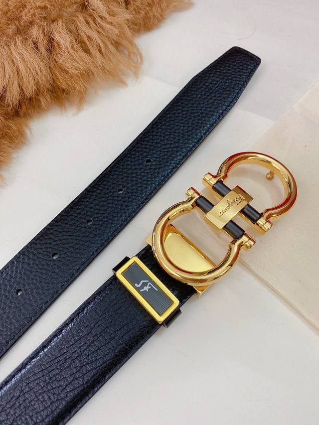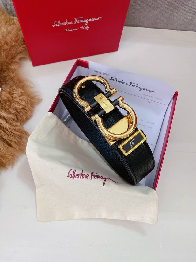 配正版包装菲拉格慕官网同步新款,原单镀钯精品扣,定制牛皮,双面带身皮纹质感柔软,请看图片认细节,品质保真,宽度3.4Cm...