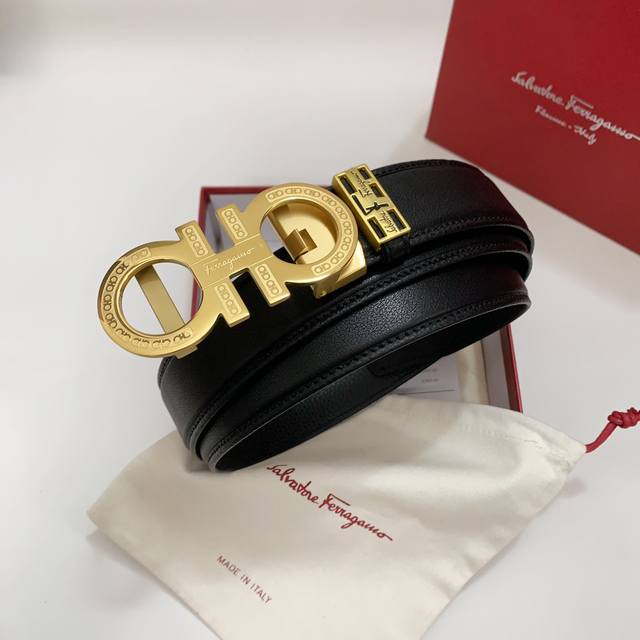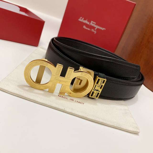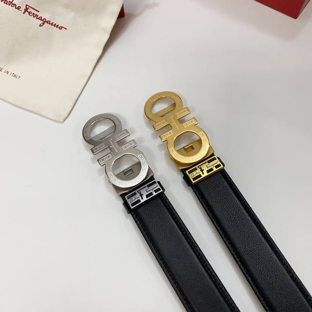 配图片款得物官网正品包装,同步代购专供精品,菲拉格慕高端皮包边纳帕皮料系列! 精工细作两件套纯钢自动款系列,真空电镀五金扣件,厚实皮料质感超赞,宽度3.4Cm 专柜最新版买版开模定制