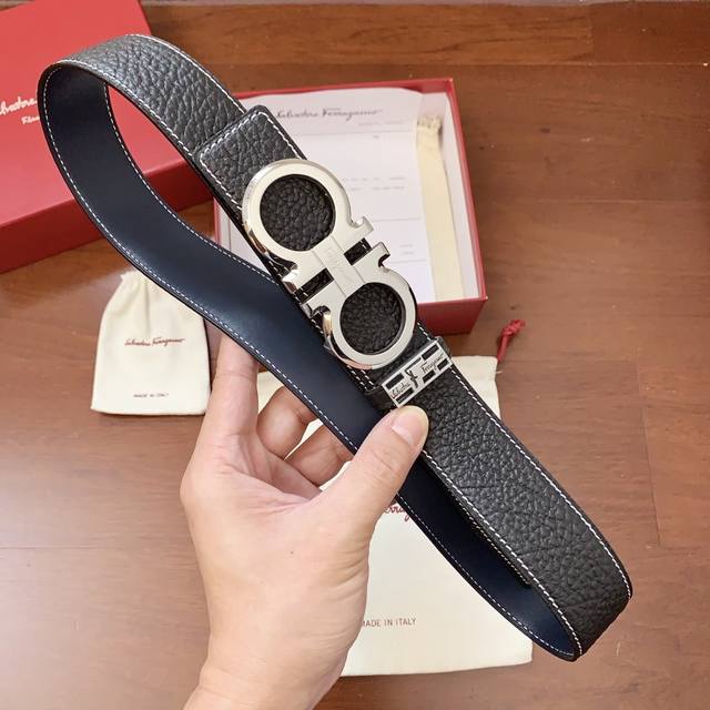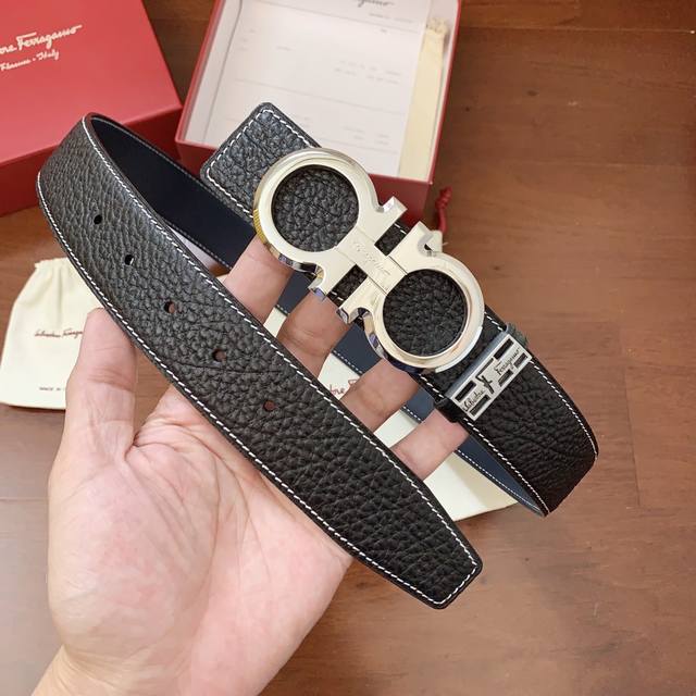 菲拉格慕 双面意大利进口头层荔枝纹牛皮,搭配真空电镀亮面纯铜扣,官网新款,专柜有售,市场顶级品质,支持验货...