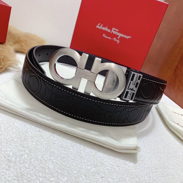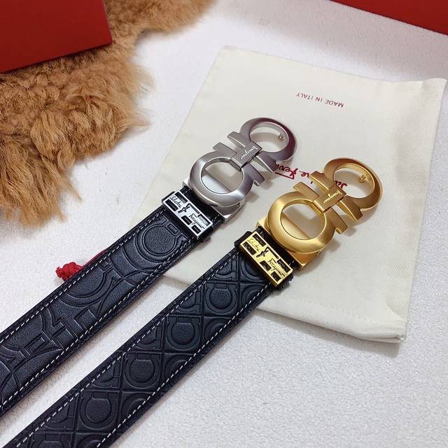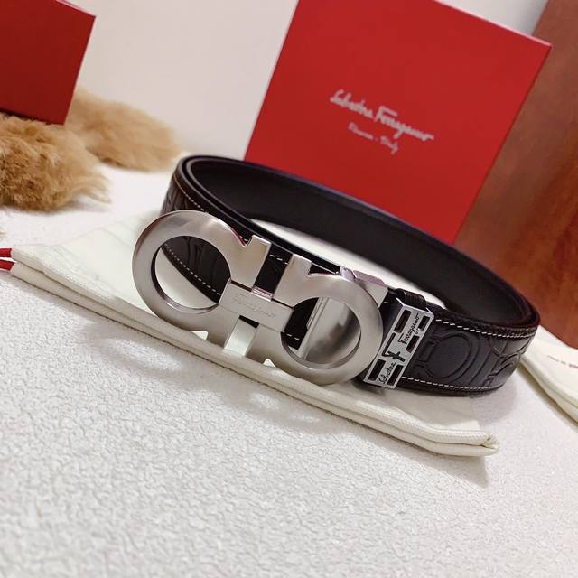 配正版包装菲拉格慕官网同步新款,原单镀钯精品扣,定制牛皮,双面带身皮纹质感柔软,请看图片认细节,品质保真,宽度3.4Cm...