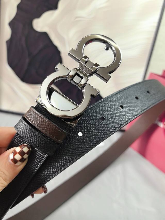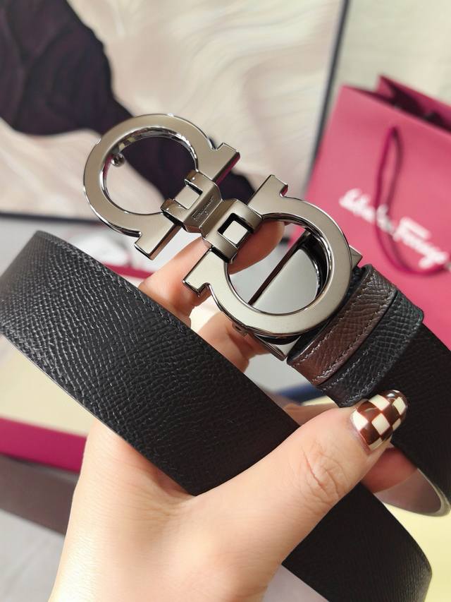 配正版包装,菲拉格慕经典款,精品打磨制作,看图看细节,皮料厚实饱满,正版同步, 双面可用皮纹 版型时尚高档 宽度3.4 Cm 高清实拍大图 ,保质保量