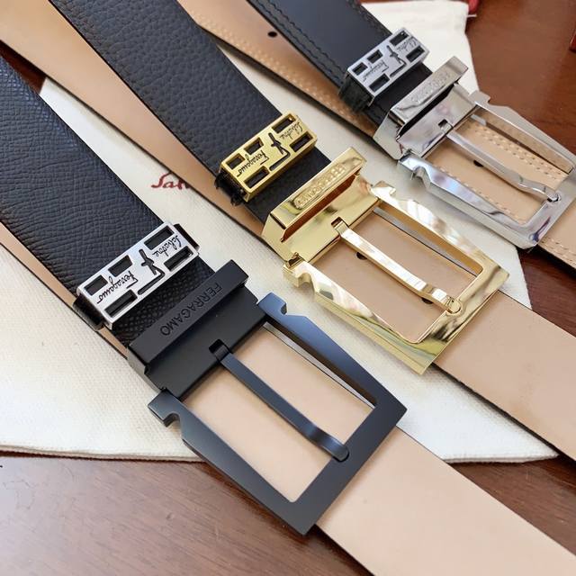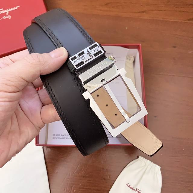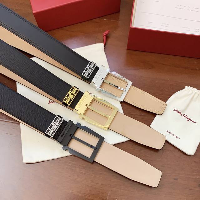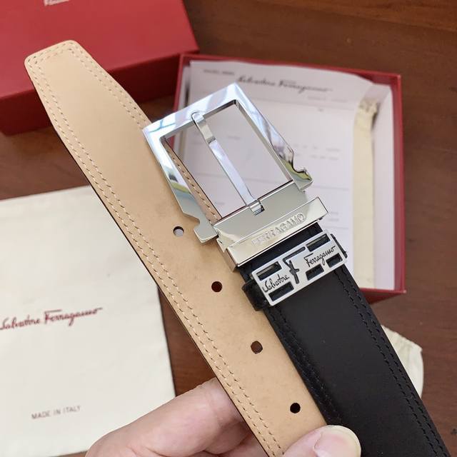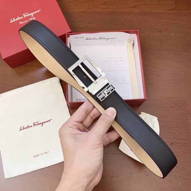 配正版包装菲拉格慕官网同步新款,原单镀钯精品扣,定制牛皮,双面带身皮纹质感柔软,请看图片认细节,品质保真,宽度3.4Cm...