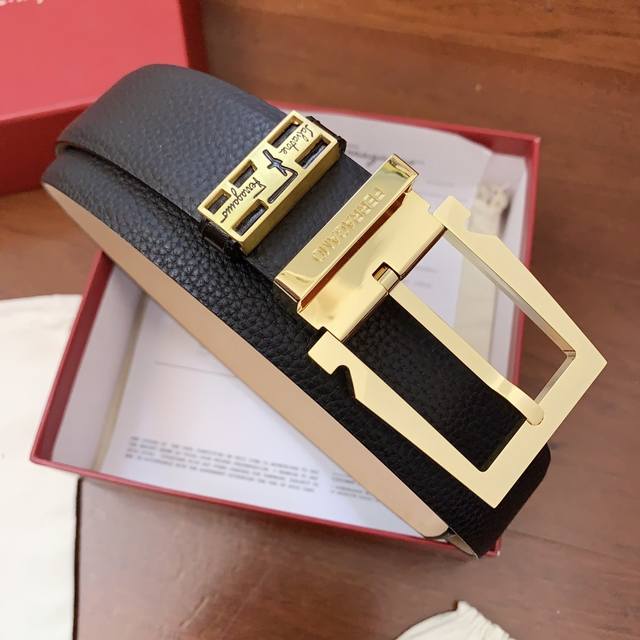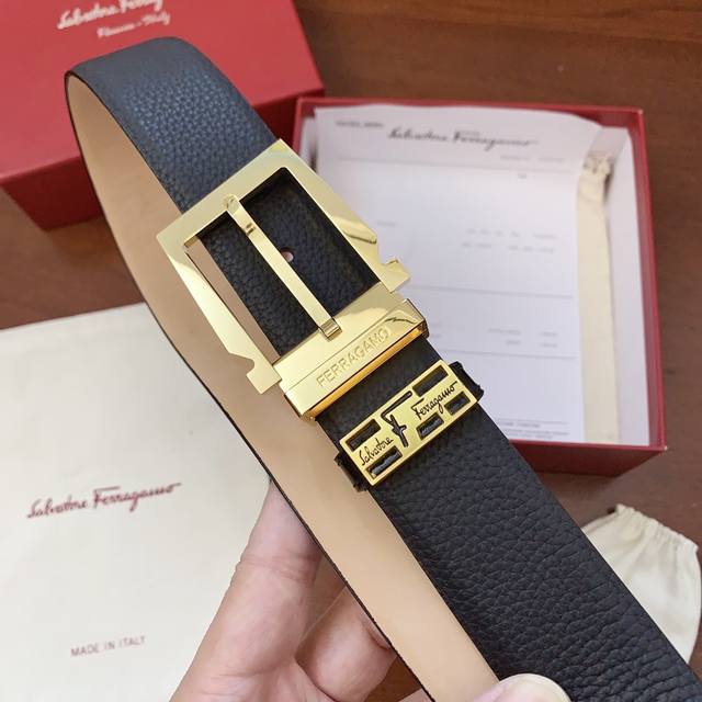 / 配正版包装,菲拉格慕原厂定制皮料,精品打磨制作,看图看细节,非常厚实饱满,正版同步, 皮纹清晰质感舒适 版型时尚高档 宽度3.4 Cm 高清实拍大图 ,保质保量